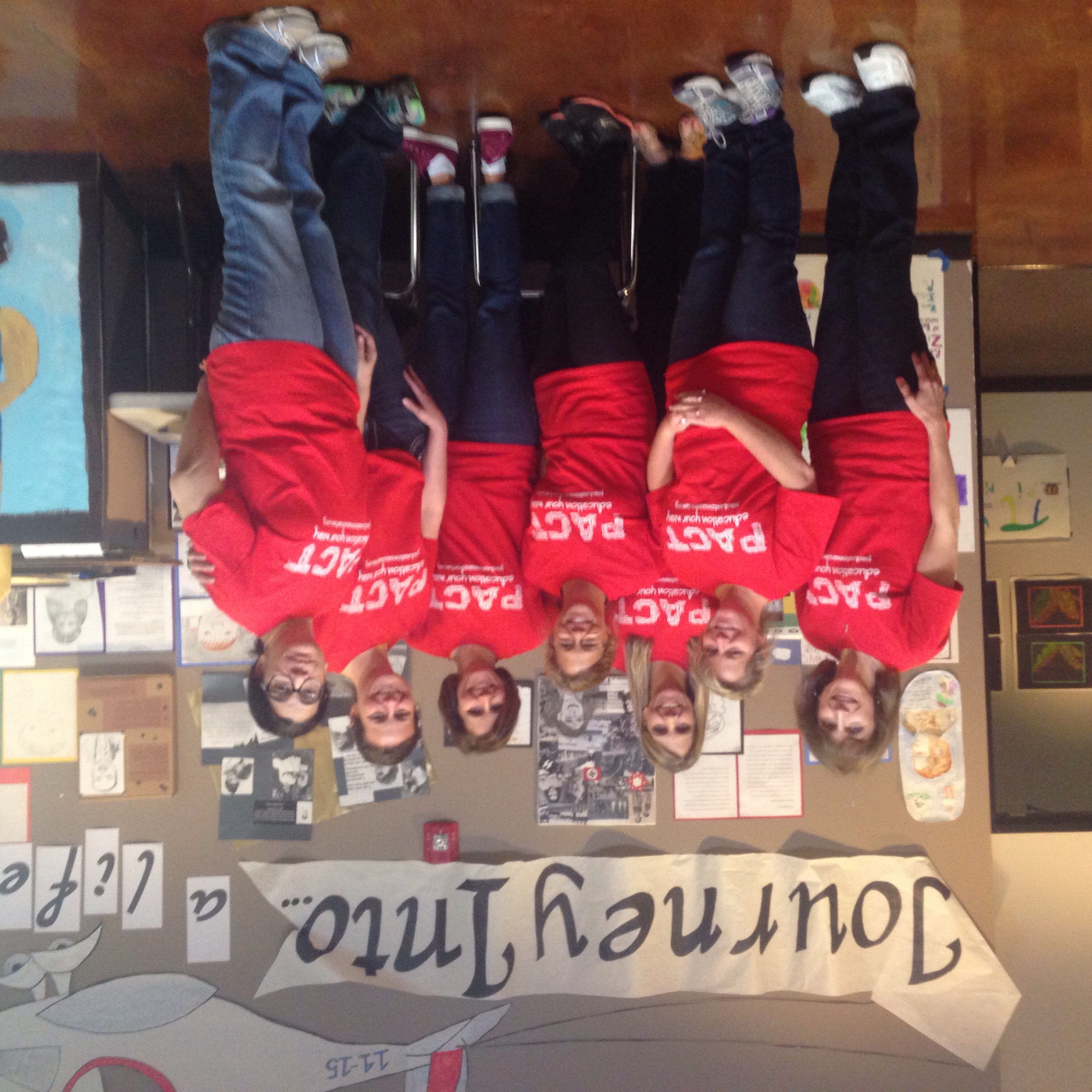 "This picture was taken when we got our shirts from CustomInk. Our staff loves them. It was easy to create online. Your artist helped us refine our word all ended so quickly and efficiently.We got our shirts quickly and were totally excited when we saw them."