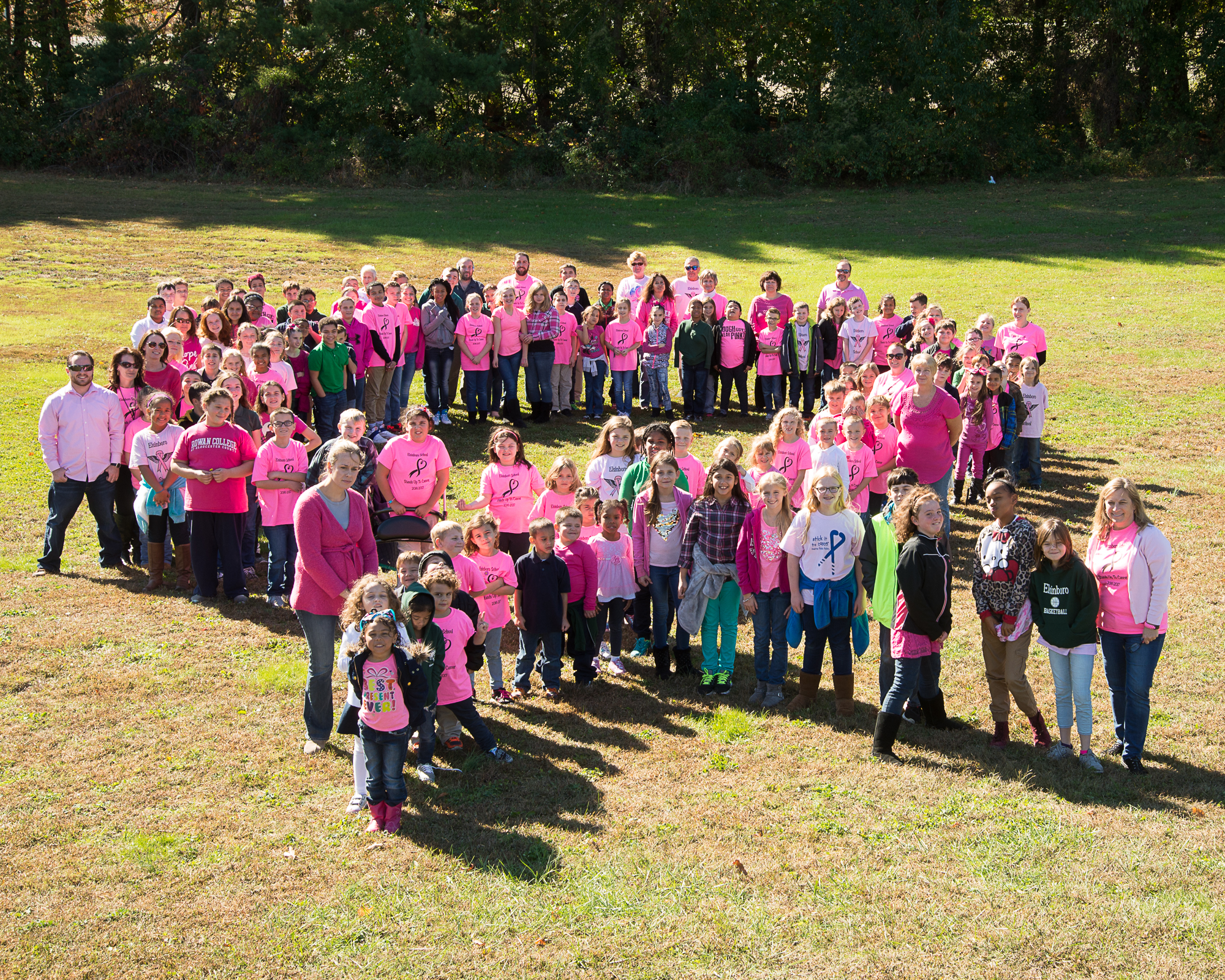 "We had all the kids wear there pink T- Shirts that we purchased from custom ink and we went on the playground and had a photographer take the pick"