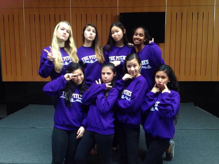 "This is our first time working with CustomInk and our experience with them has been incredible so far! This picture is of The Pitches, an all women's a capella group that represents the music program at Singapore American School. We took this silly picture before performing the American and Singapore national anthems for an annual school festival. We love our sweaters and we will definitely be contacting CustomInk again next year for another set of them! "