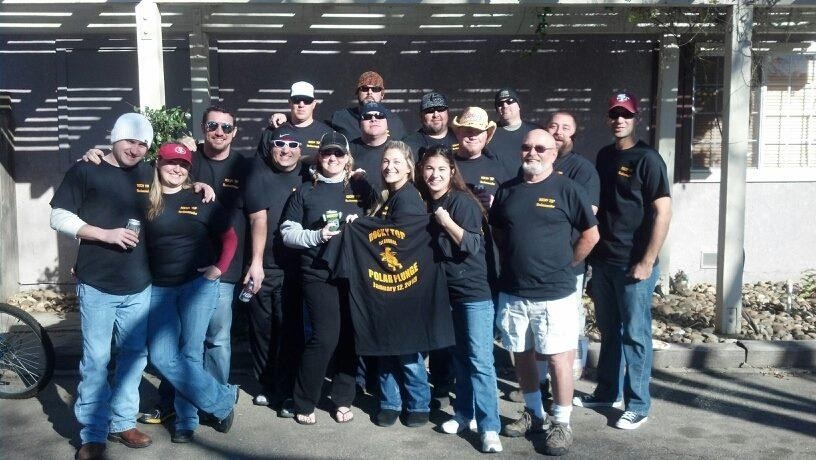 "This was the Rocky Top Polar Plunge...water was a balmy 40...(cold for California)..only half of the participants are pictured. Everyone loved the design and quality that CustomInk provided, and I loved the customer service I received...I am already planning the next event so I can design a new shirt!"
