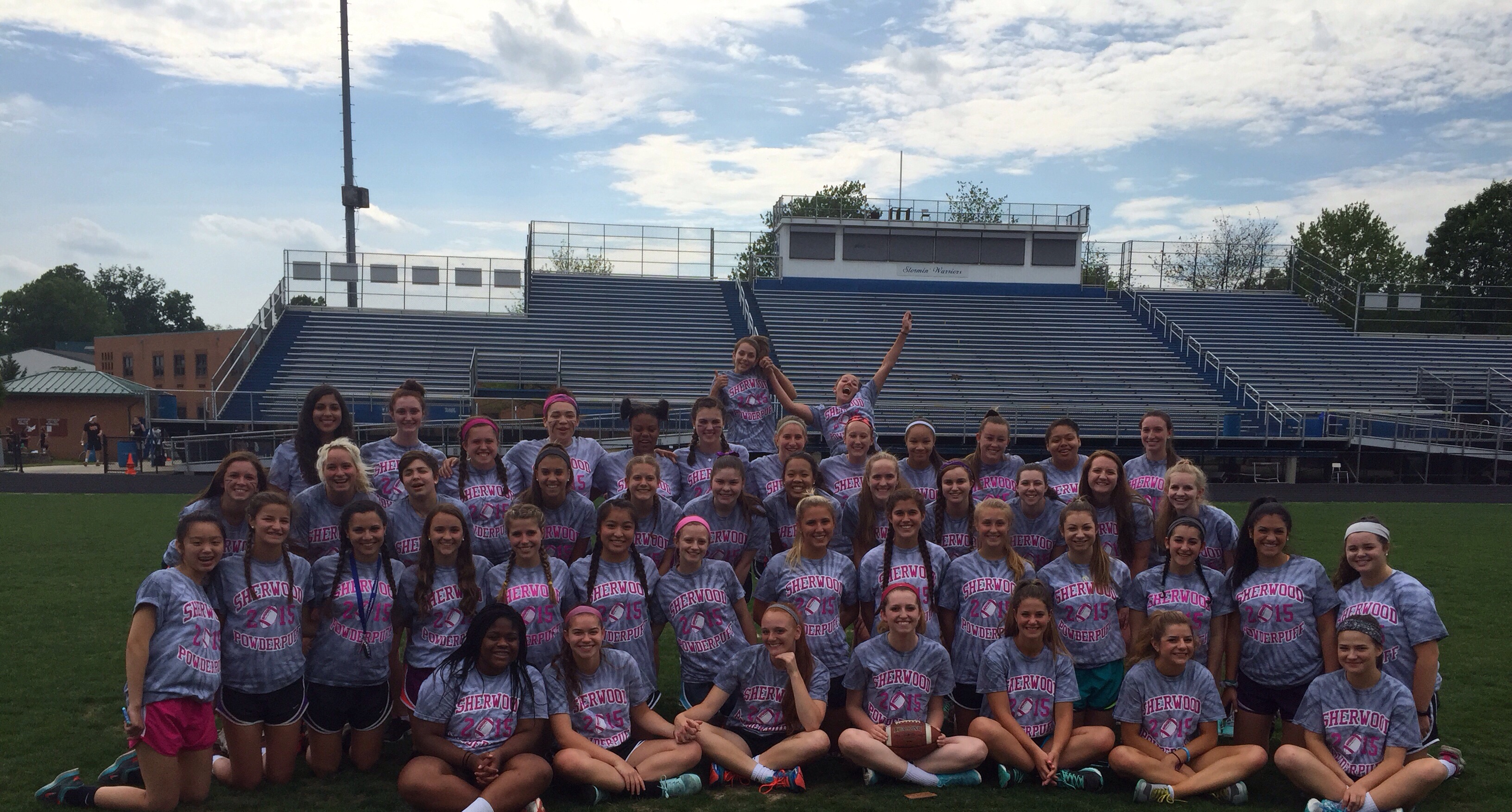 "This is a photo of Sherwood High School junior girls before our Powderpuff game! Thank you to CustomInk for the speedy delivery and helpful customer service, making sure we got our order in time! The awesome shirts gave us the positive spirit that led us to victory!"