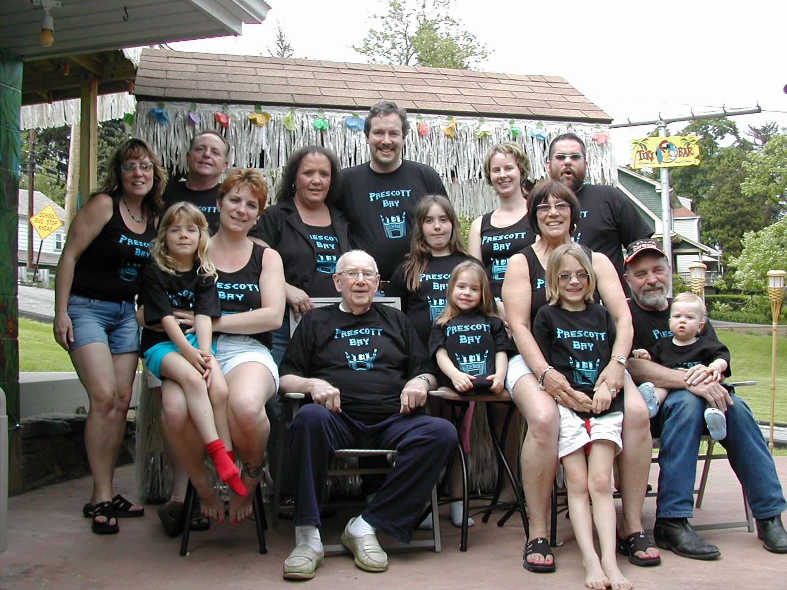 "Last summer my husband turned my swing into a Tiki bar for our twin sons 21st birthday party. It was supposed to be temporary but it grew on us and by the end of the summer 2007, it was a permanent fixture. Our back yard, patio and pool, have now been named Prescott Bay. For Easter I had shirts made for our friends and family with Prescott Bay Tiki Bar on the front and 2008 2nd Summer of the Tiki on the back. It was finally warm enough in Pittsburgh to open up Prescott Bay and celebrate the beginning of summer. Only about half of the folks made it for the picture. Custom Ink did a great job. The ladies all love the tank tops. I would definately order again (everyone who sees our shirts wants one!)"