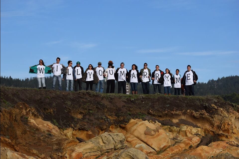 So I made tshirts bearing one letter that would spell out the phrase "will you marry me"