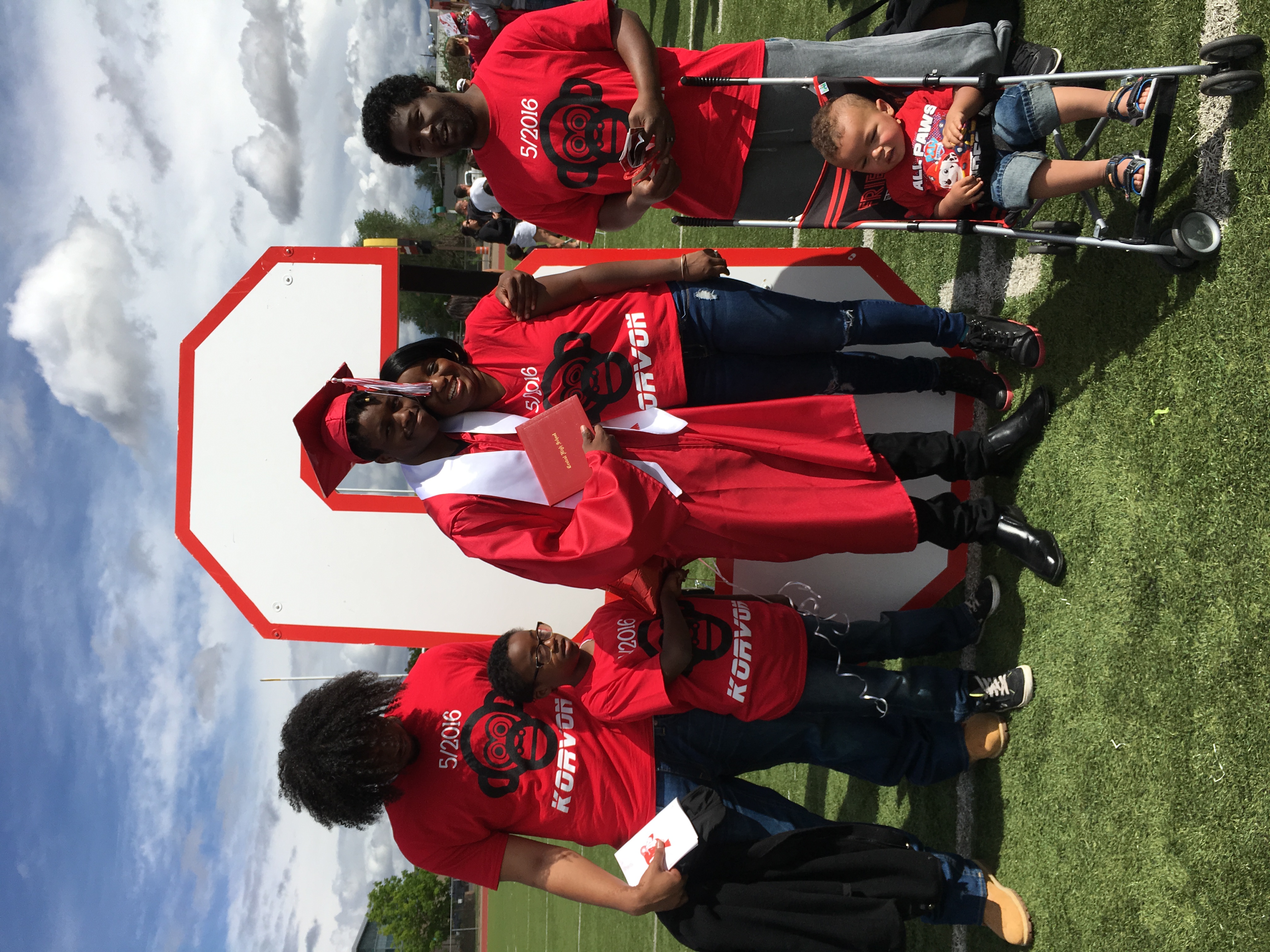 "This photo was taken during graduation for my son. His nickname is monkey for good luck. And our shirts show the the monkey for good luck.