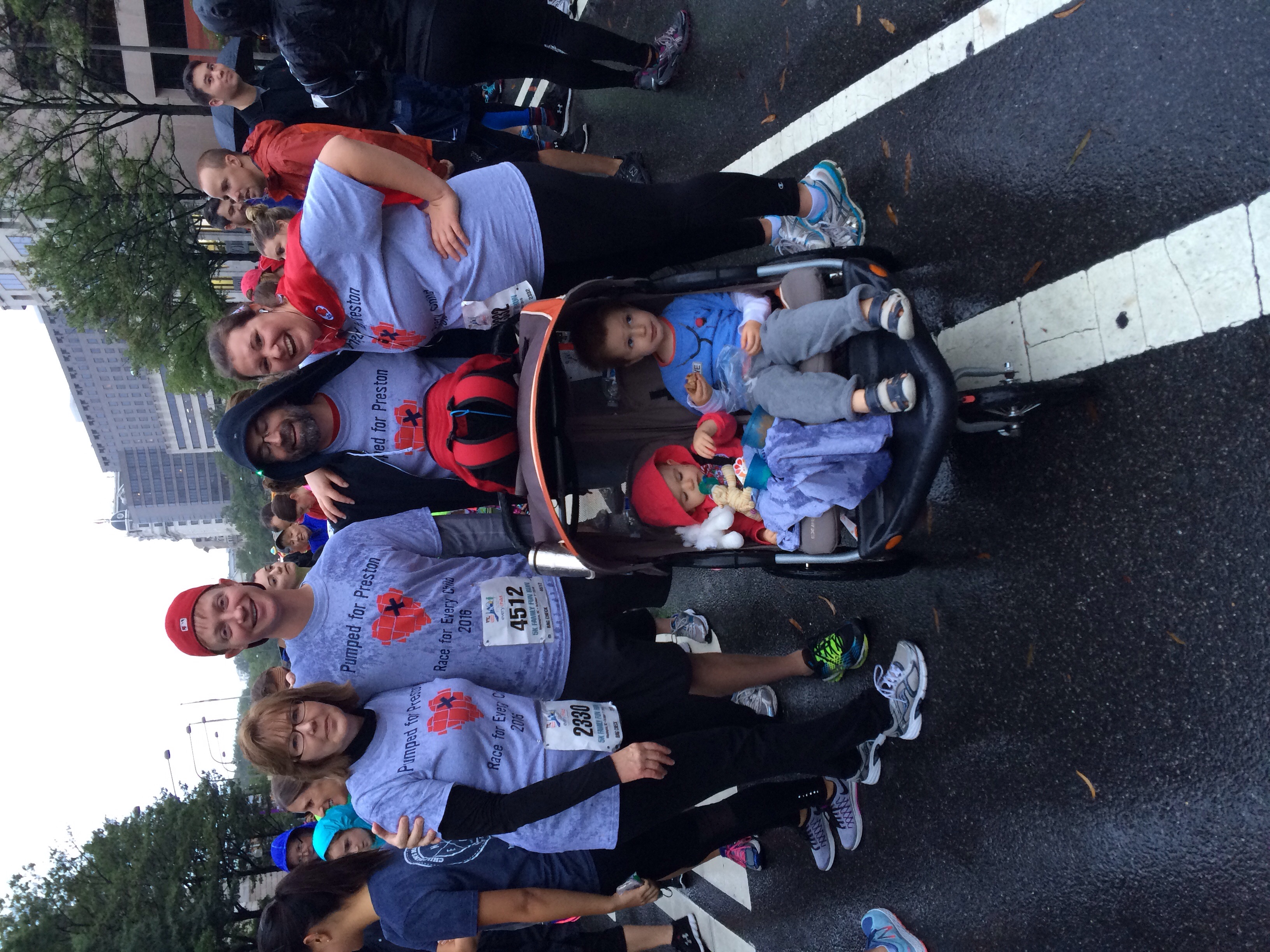"The shirts we are wearing are in honor of our son, Preston, who was born with multiple heart defects. This photo was taken at a 5k charity race for the Children's hospital in Washington, DC that performed our son's open heart surgery. We have used CustomInk two years in a row for our team t-shirts because we know the shirts will look great, are affordable and excellent quality. We will definitely continue to use CustomInk for all our charity shirts. "