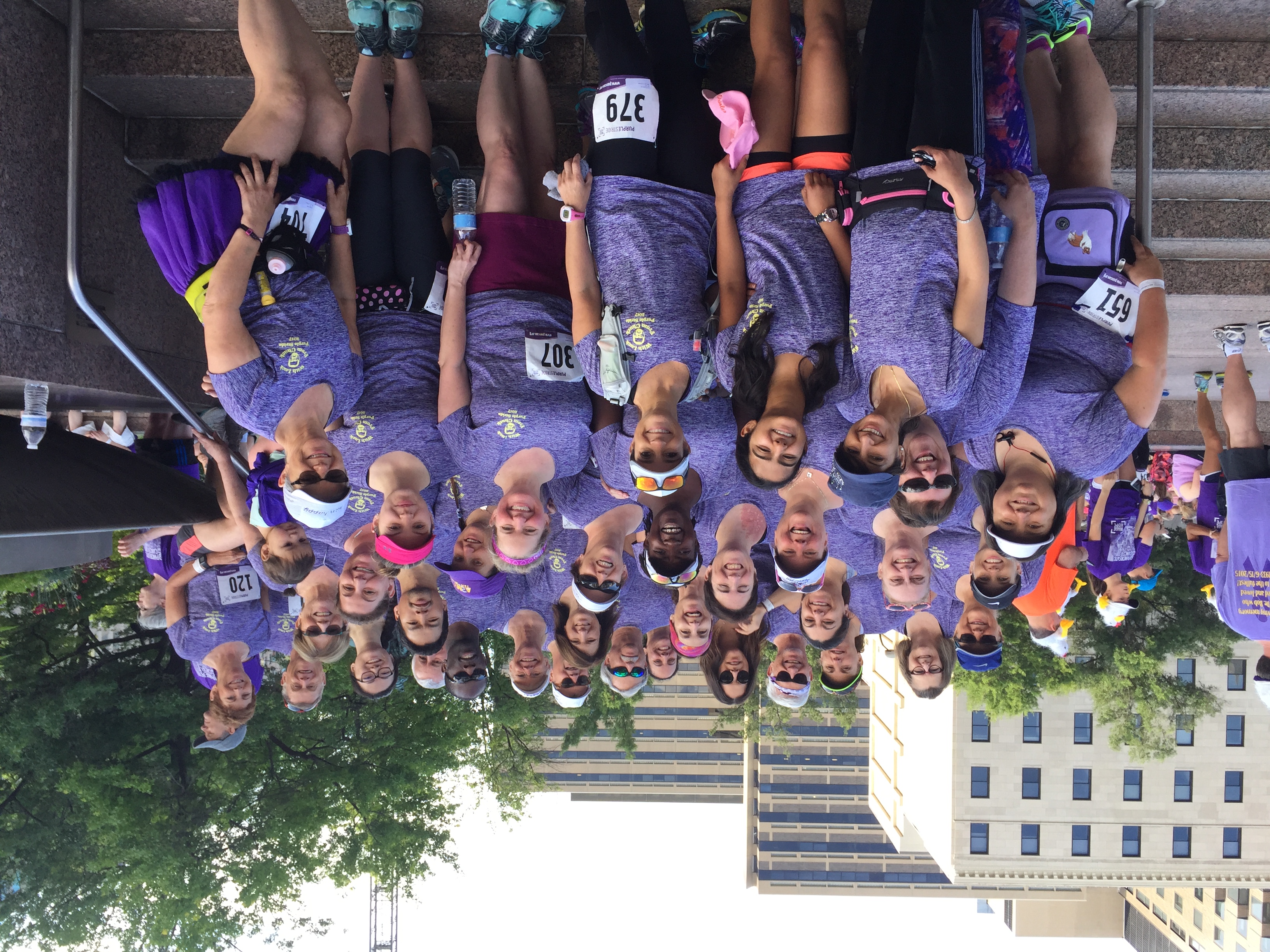 "Team With Luck from Chuck has been participating in Purple Stride DC since 2014. We've been wearing team shirts from CustomInk every year and the shirts and service are top notch! This year we went with a heathered look which allowed our team to stand out and they felt cool, even in the heat of the D.C. sun. Mary started this team in memory of her husband Chuck who passed away from pancreatic cancer in 2011. Chuck was her first running coach and Mary has an uncanny ability to win raffles at Fleet Feet Gaithersburg, where she coaches a 5k program as well. With our cool CustomInk shirts, we hope everyone had a great race, "With Luck from Chuck.""