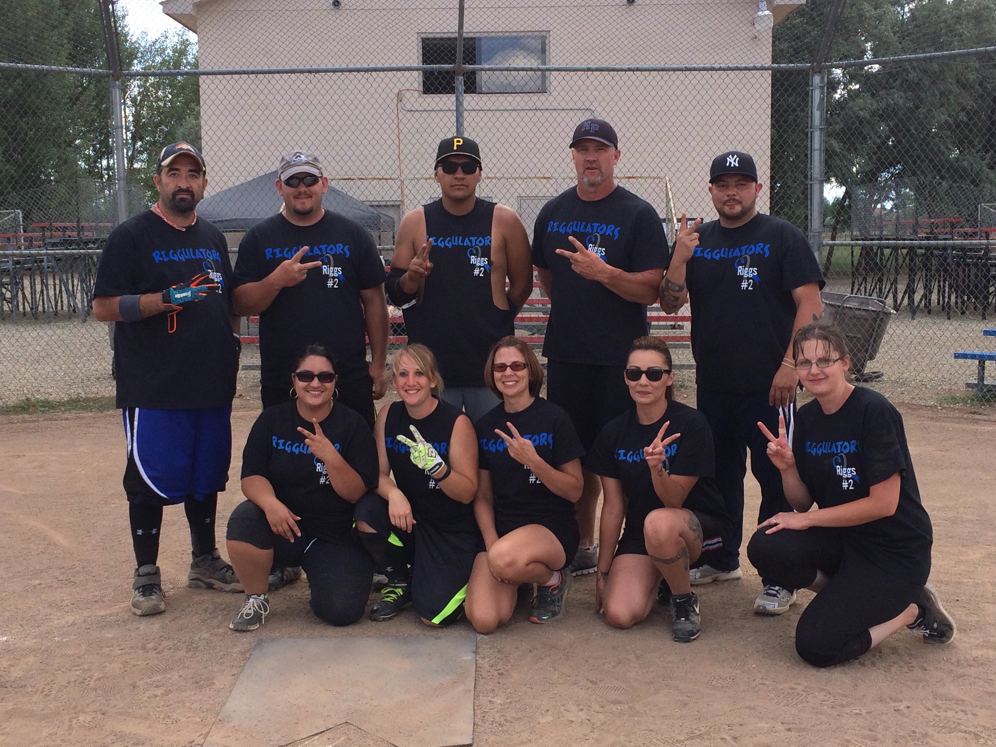 "This photo was taken in Alamosa, CO on 08/28/16. We were playing in a softball tournament "2ns Annual Alycia Riggs Memoral Softball Tournament" Alycia is my sister and was killed in a car accident in 2015. We hold a tournament to honor her and raise money for her young daughter. We love our Riggulator T-Shirts from CustomInk they help up represent Alycia and her love for softball!"