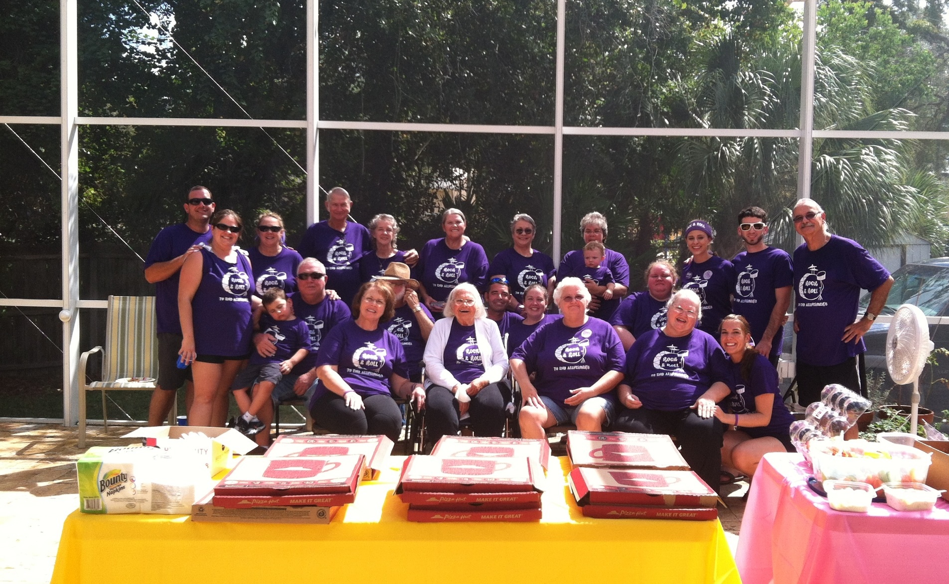 "Our family and friends participated in the Walk to End Alzheimer's in honor of my grandmother (in the white sweater) and celebrated afterwards with a party at her assisted living facility. CustomInk's easy, sleek website made designing, ordering, and pricing so easy, and I love the sign-up order form! We had a great time and raised $1200, and we look adorable in our shirts! Thank you so much!"