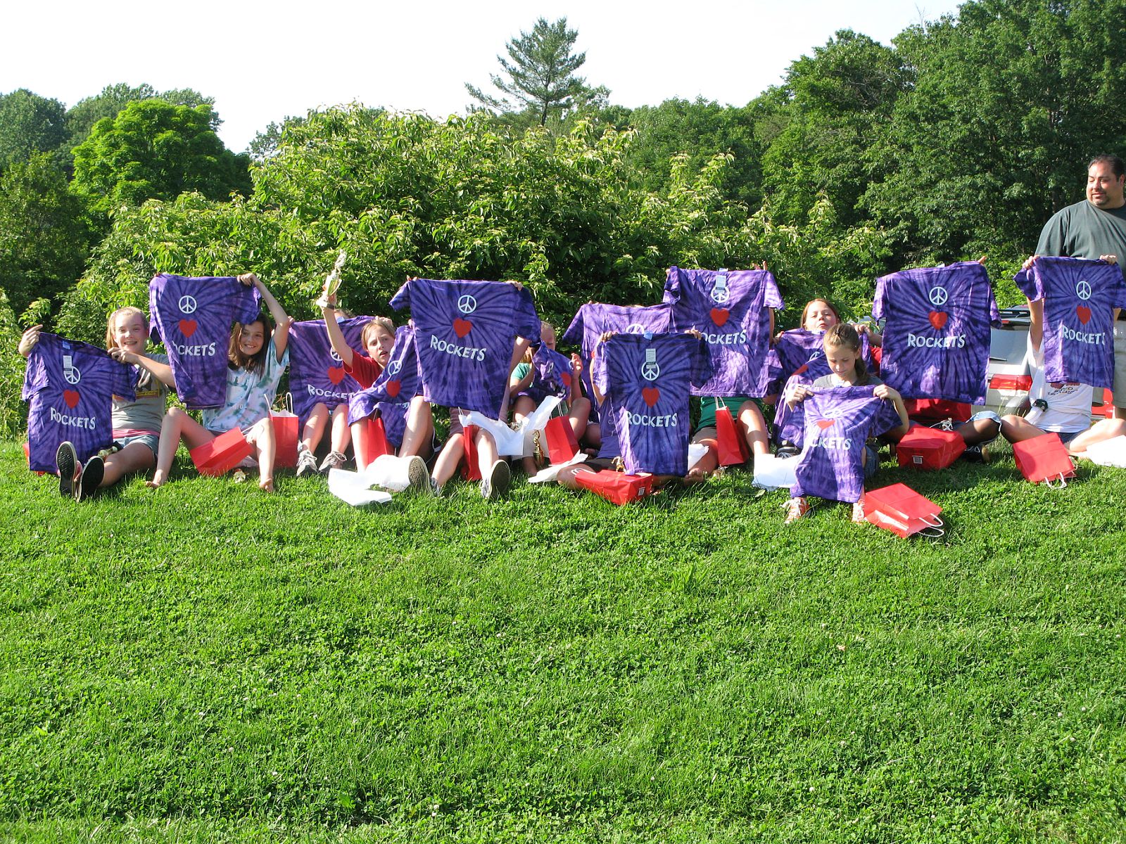 "Our all girl soccer team won their Spring Season Championship! So to celebrate, we wanted to get the girls something fun. All the girls are into the saying Peace, Love & ?. So I came up with getting shirts done with the peace sign, a heart & Rockets (the name of their soccer team). They look awesome on purple tie dyed shirts! The CustomInk website was amazing and so easy. I placed the order and only had one week turn around time. CustomInk was able to get it done and the shirts were at my door when promised. I was notified with each step my order was going through. It was great! I will use CustomInk again and tell people about them! Thanks again!"
