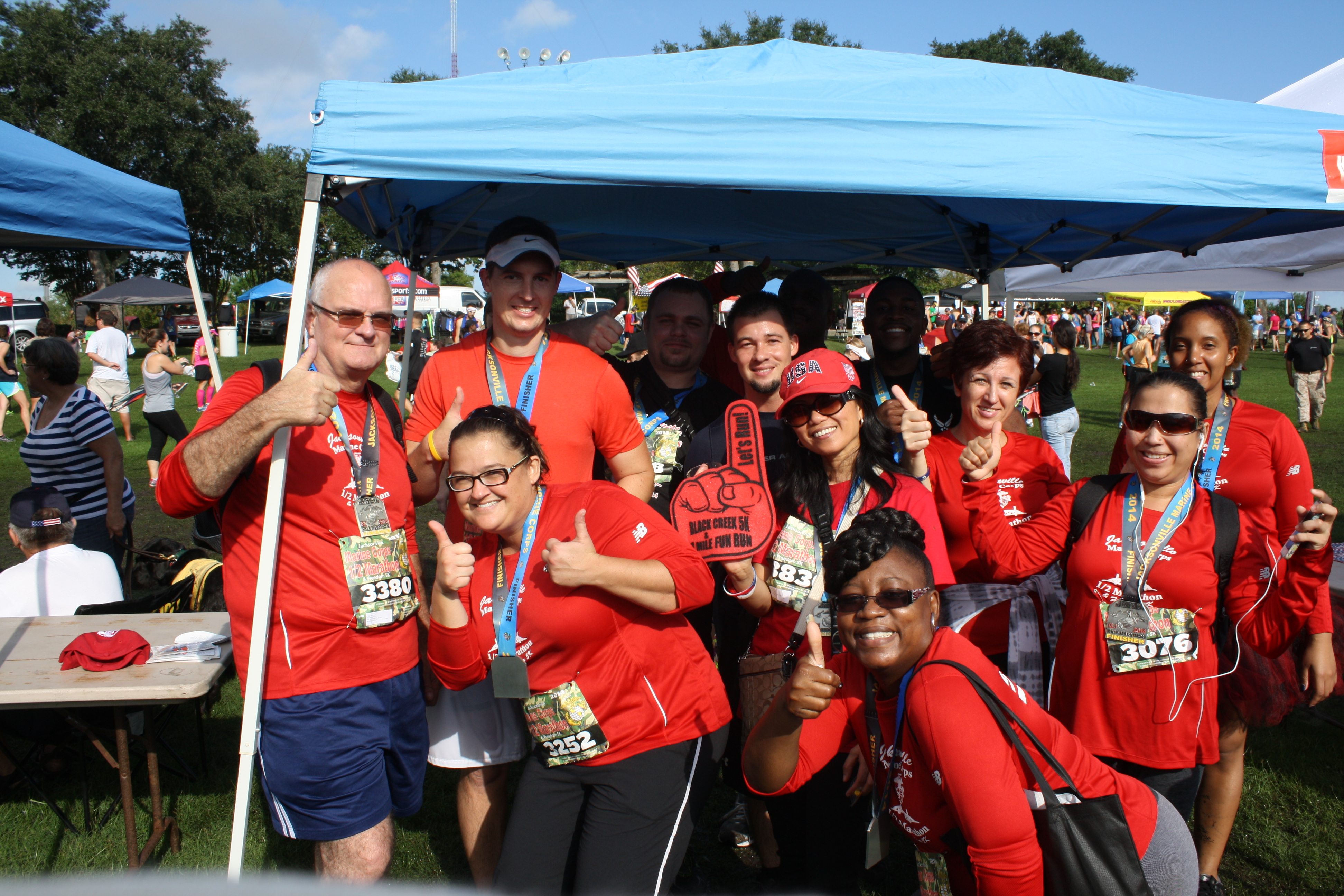 "This photograph is of some of our team of runners at the 10/4/2014 Marine Corp 5K and 1/2 Marathon in Jacksonville, Florida. Saft has a mission to support our military and this is just one of many ways that we do so each year. We love our team members and we LOVE our military!"