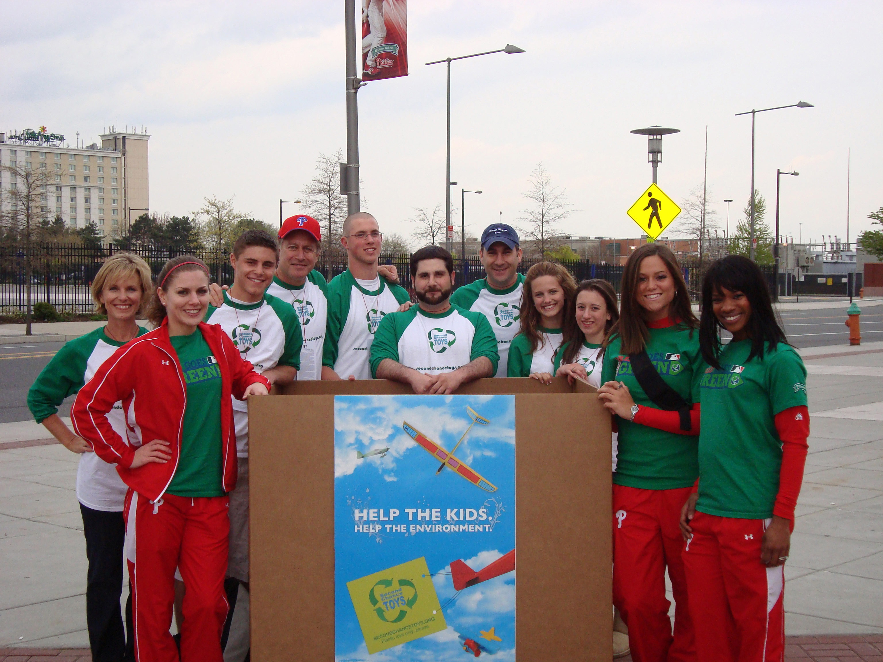 "The location was Citizens Bank Park in Philadelphia, PA on April 22, 2009, home of the world champion Philadelphia Phillies. Second Chance Toys and the Phillies' Red for Greeen team joined forces on Earth Day 2009 to collect plastic toys, and recycle them by distributing them to low income, deserving children in our community. Fans brought their gently used plastic toys to the ball park, where our team, (wearing fabulous Custom Ink t-shirts!) was on hand to collect the toys and get them ready to distribute to the children at local Head Start organizations and schools. Second Chance Toys keeps the toys out of the landfills while making thousands of kids happy! Two great causes in one! Custom Ink was fabulous in helping us design a shirt that promoted our name, our website and purpose. We collected a lot of toys and generated a lot of interest on Earth Day. Thanks for your help, Custom Ink! We couldn't have done it without you."