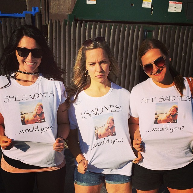 "10 of us threw our best friend Aly's bachelorette party in Boston where we all met, and where she and her fiance fell in love. The couple, being the funniest people on the planet, needed t-shirts to match their amazing, hilarious personalities. They are just the best two people, ever and we needed the experience to be extra special. The shirts were a huge hit on our boat cruise and karaoke bar outing!