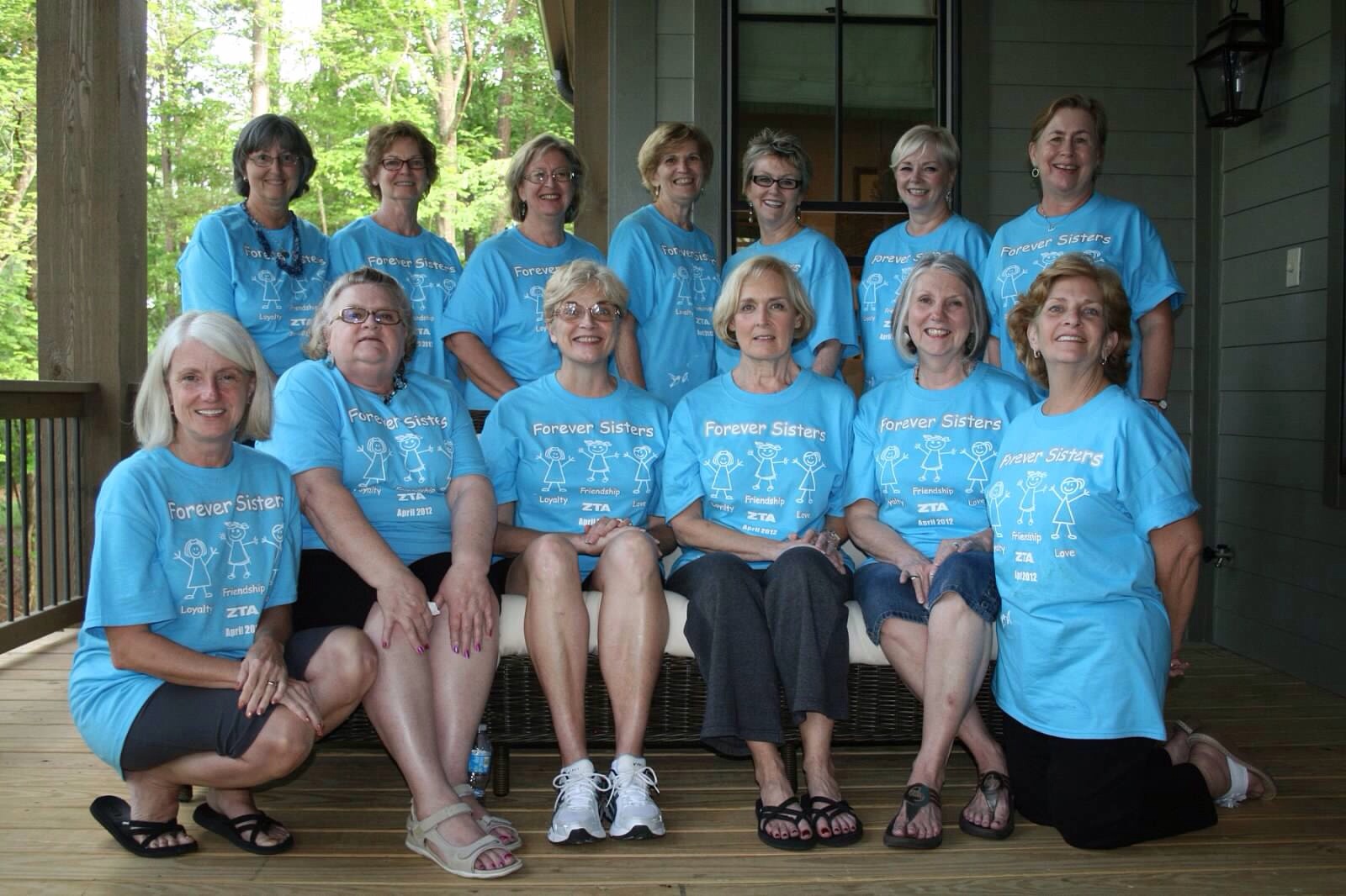 "We are a group of ZTA sisters who met at Samford University over 40 years ago. We reconnected almost five years ago via Facebook and have been laugh ting ever since. This was our first shirt from 2012. "