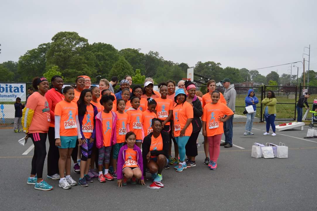 "This is a group photo before our race. The event is the Hammerbird 5K in Winston-Salem, NC. Our school has a club where we run with students and have character education lessons as well. We finish the session or club by running in a 5K, matching each girl student with a running buddy. We love being able to choose our own shirts when we run 5k's because it allows us to focus on our team of girls as we run. This year it just happened that the race shirts from the Hammerbird were the same as the ones we ordered from CustomInk. The shirts from CustomInk were so much more vivid that we were still able to keep an eye on our runners in the race. We even had a t.v. personality stop us and ask about our shirts!"