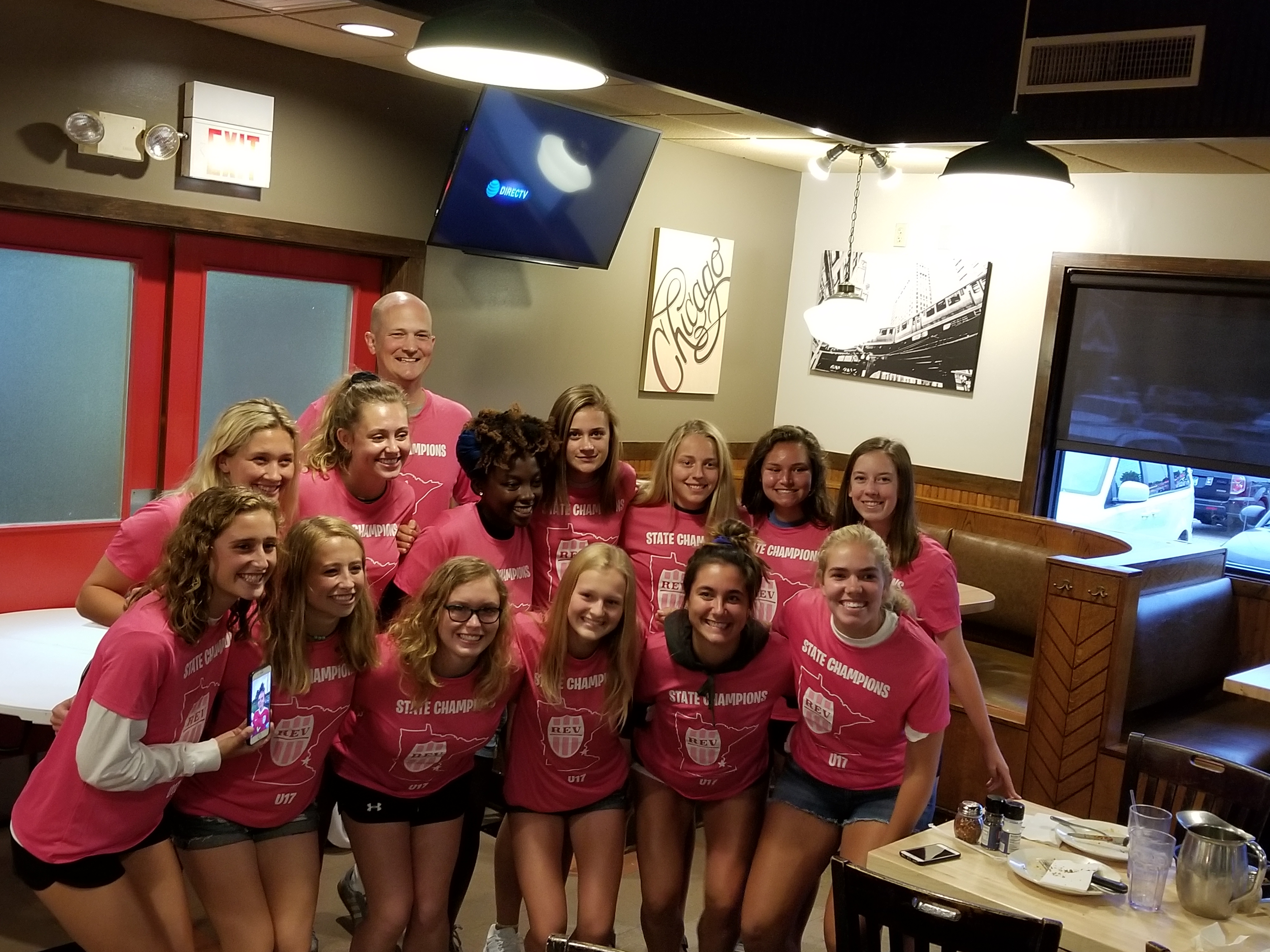 "Team celebration dinner after winning minnesota soccer state championship!"