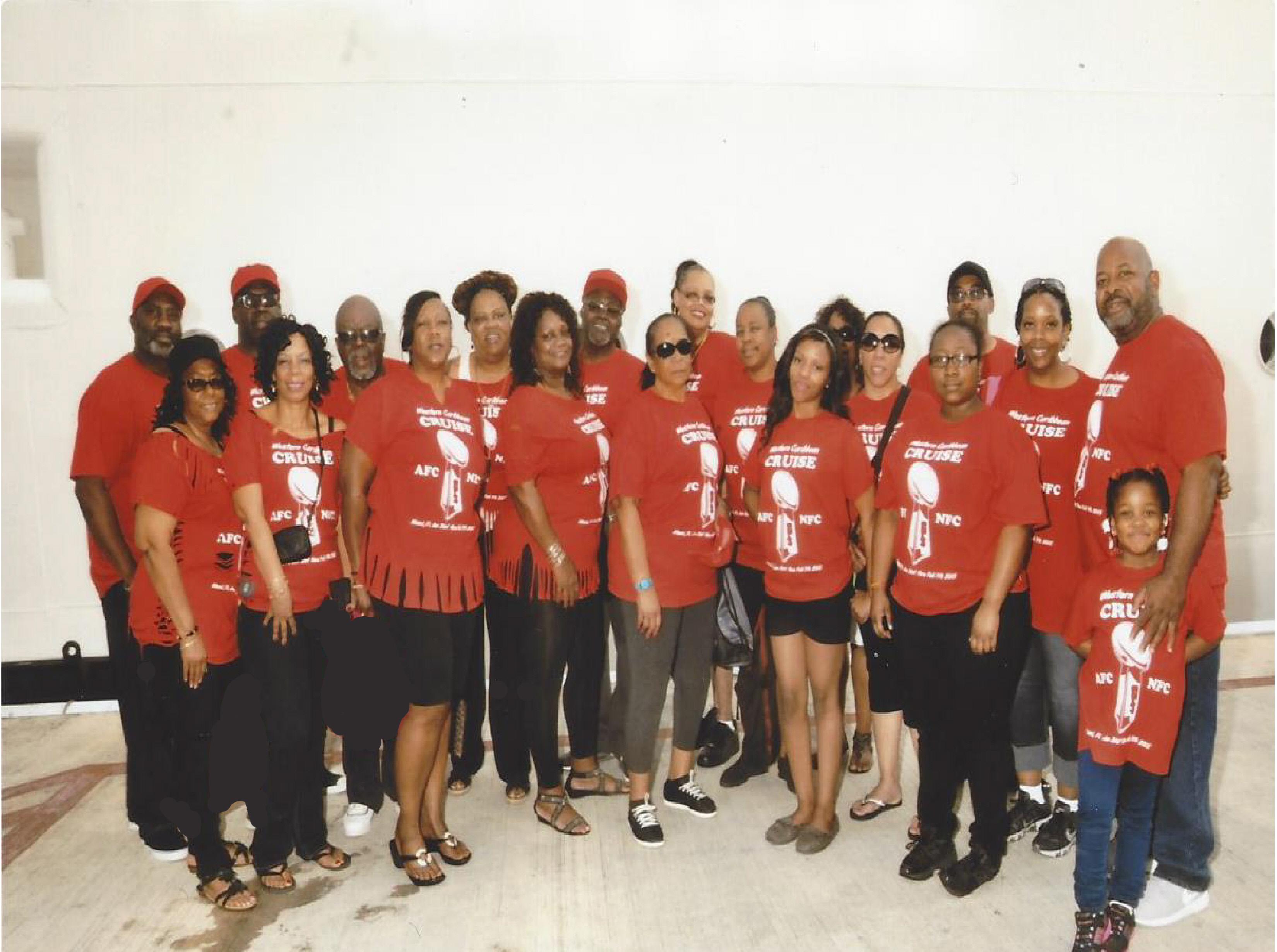 "This photo was taking on the 2015 cruise, everyone asked us where had our shirts made. The shirts were perfect"