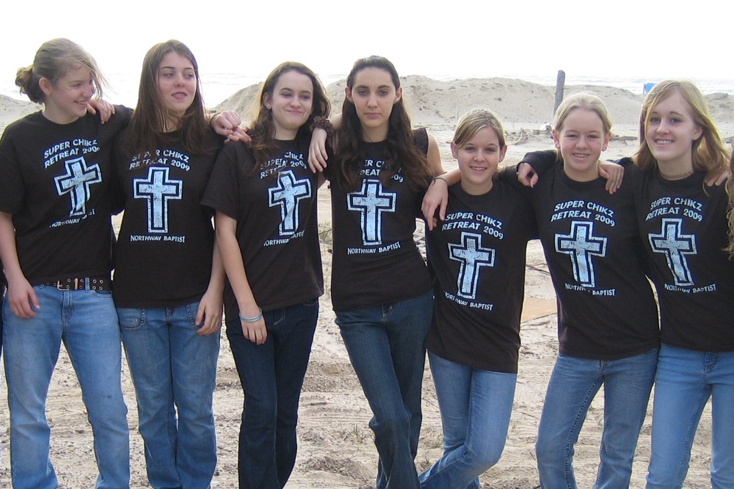 "This is a yearly girls retreat that we have in Surfide, Texas. It's for all girls in 5th-9th grade in our church (Northway Baptist in Angleton, Tx) and focuses on helping girls to be the girls God made them to be, to resist peer pressure, drugs, alcohol, etc. This is the second year your company has made our retreat pictures and our experience has been great. We've loved designing the shirts using the tools on your website and have been very pleased when the shirts came it. The girls loved the shirts this year!"