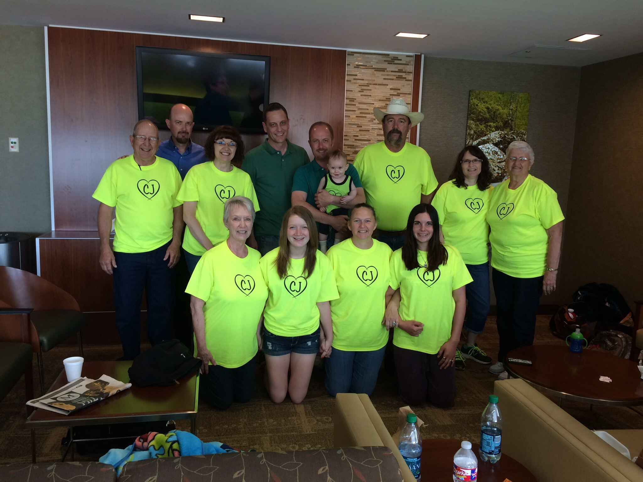 "The family supporting our son during his major surgery. He had a tumor in his neck and there was a lot that could go wrong. Everybody at the hospital loves our shirt. "