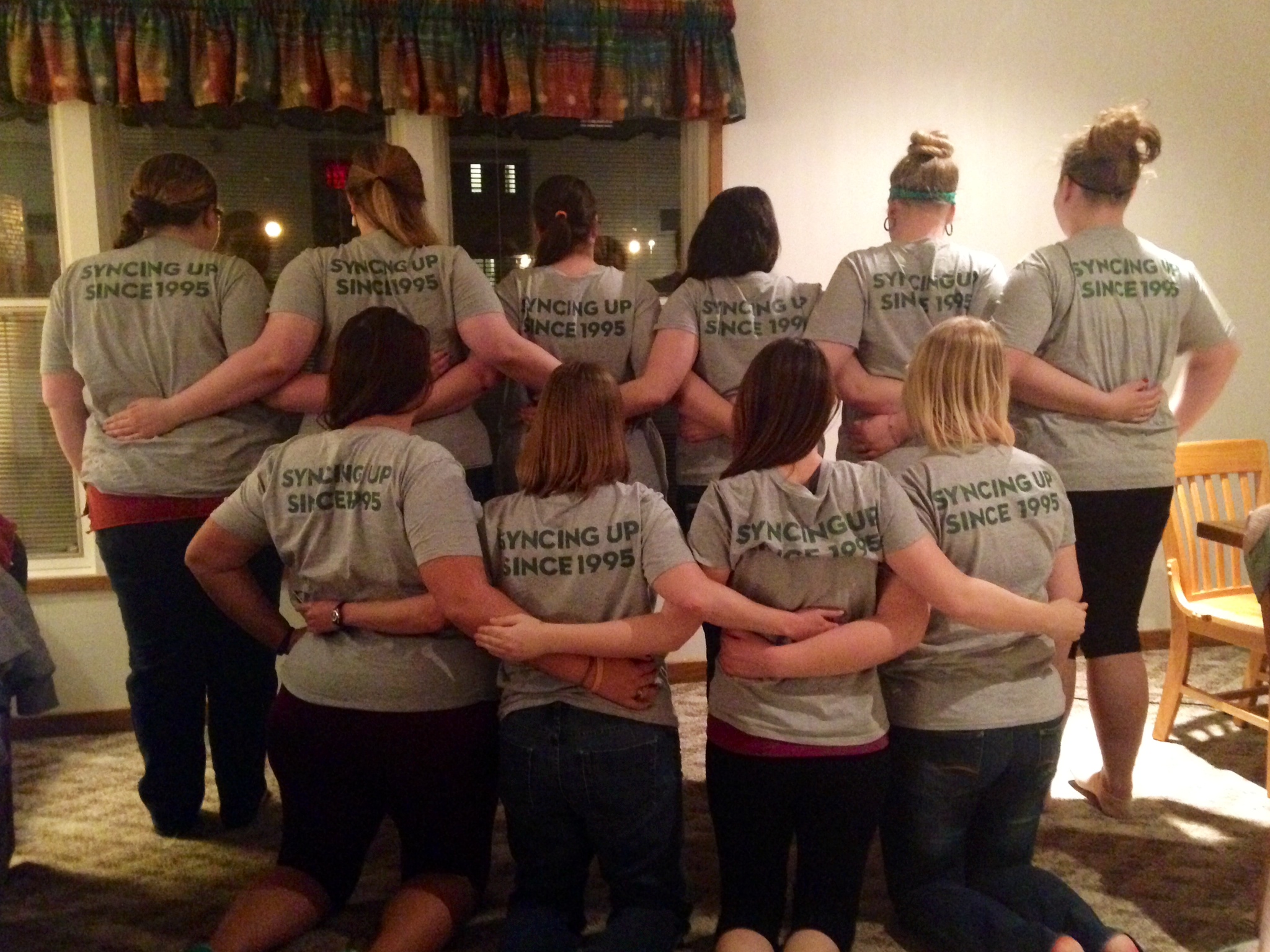 " This photo was taken right after we opened out box of custom ink t-shirts at the end of March. They say "Zeta Upsilon" on the front and "syncing up since 1995" on the back. We had a great experience with custom ink. We always order our t-shirts from this company each year. "