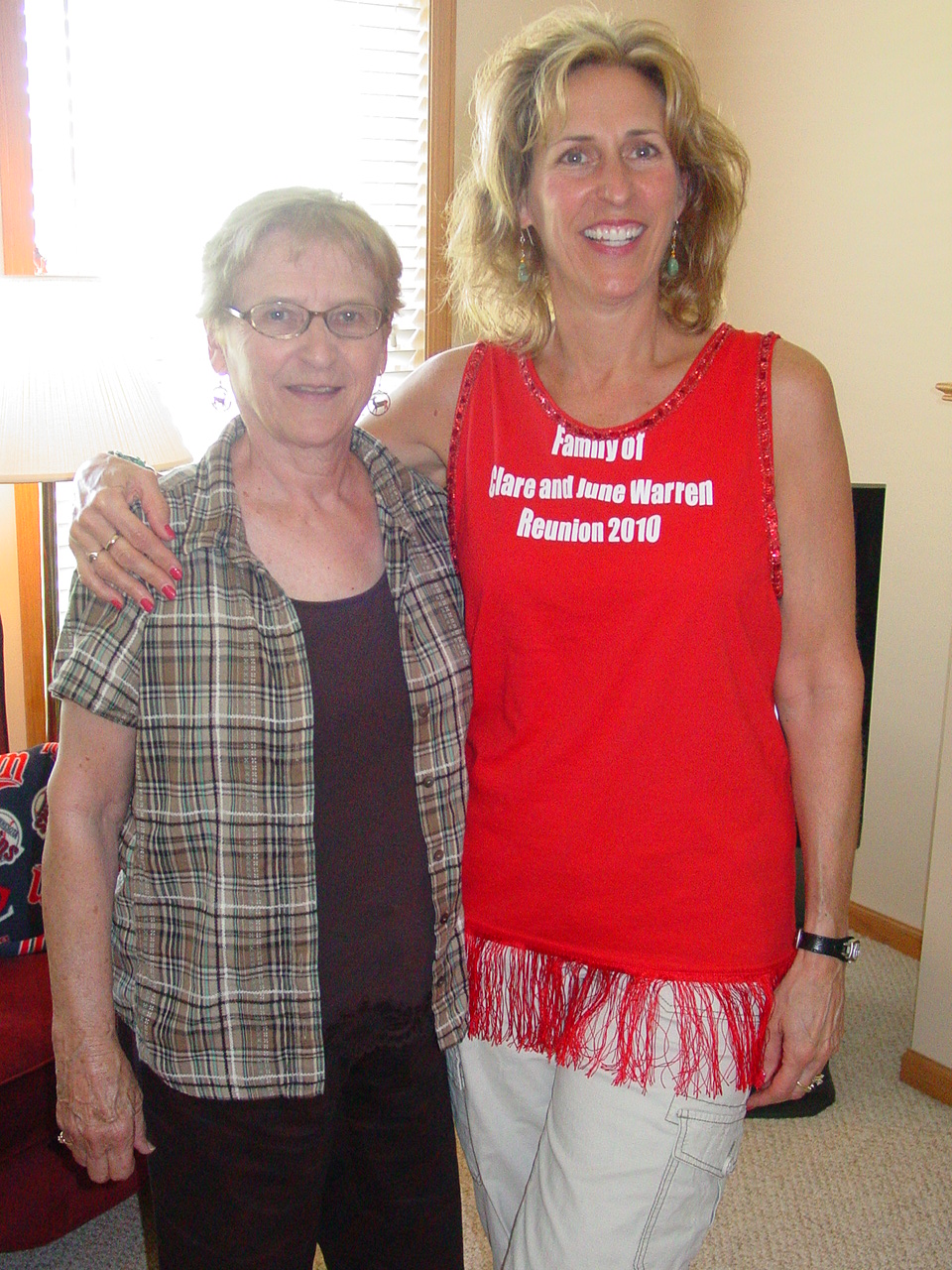 "This is one of 12 ordered shirts for our reunion. This was what one daughter did to spice it up. Not shown are ties on each side at the waist."