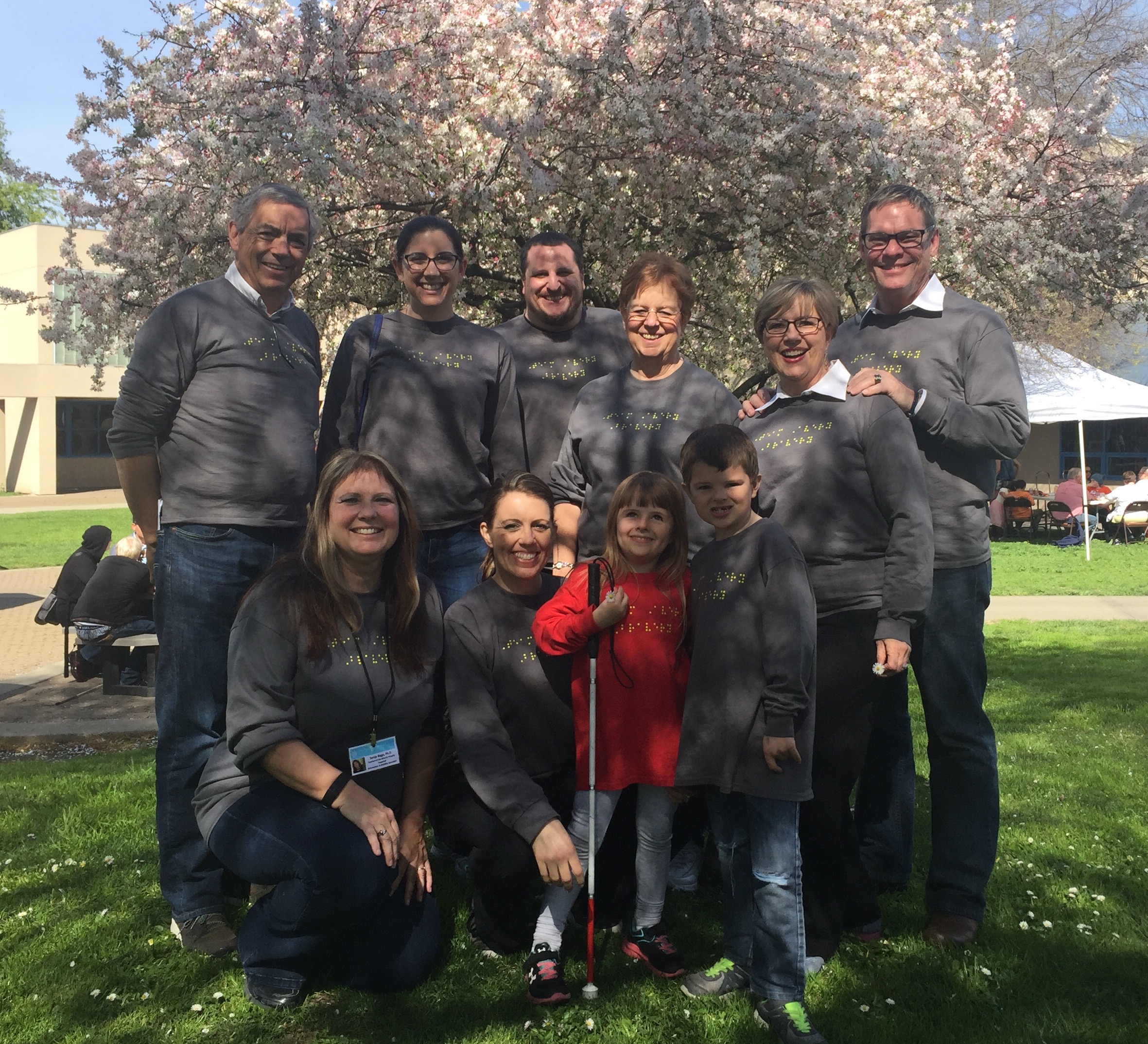 The CustomInk team worked with us to get the braille script onto the t-shirts, spelling out "Team Avery Bravery" in braille, as well as in script. Avery was thrilled to have such a support network and won a trophy at the Braille Challenge!"