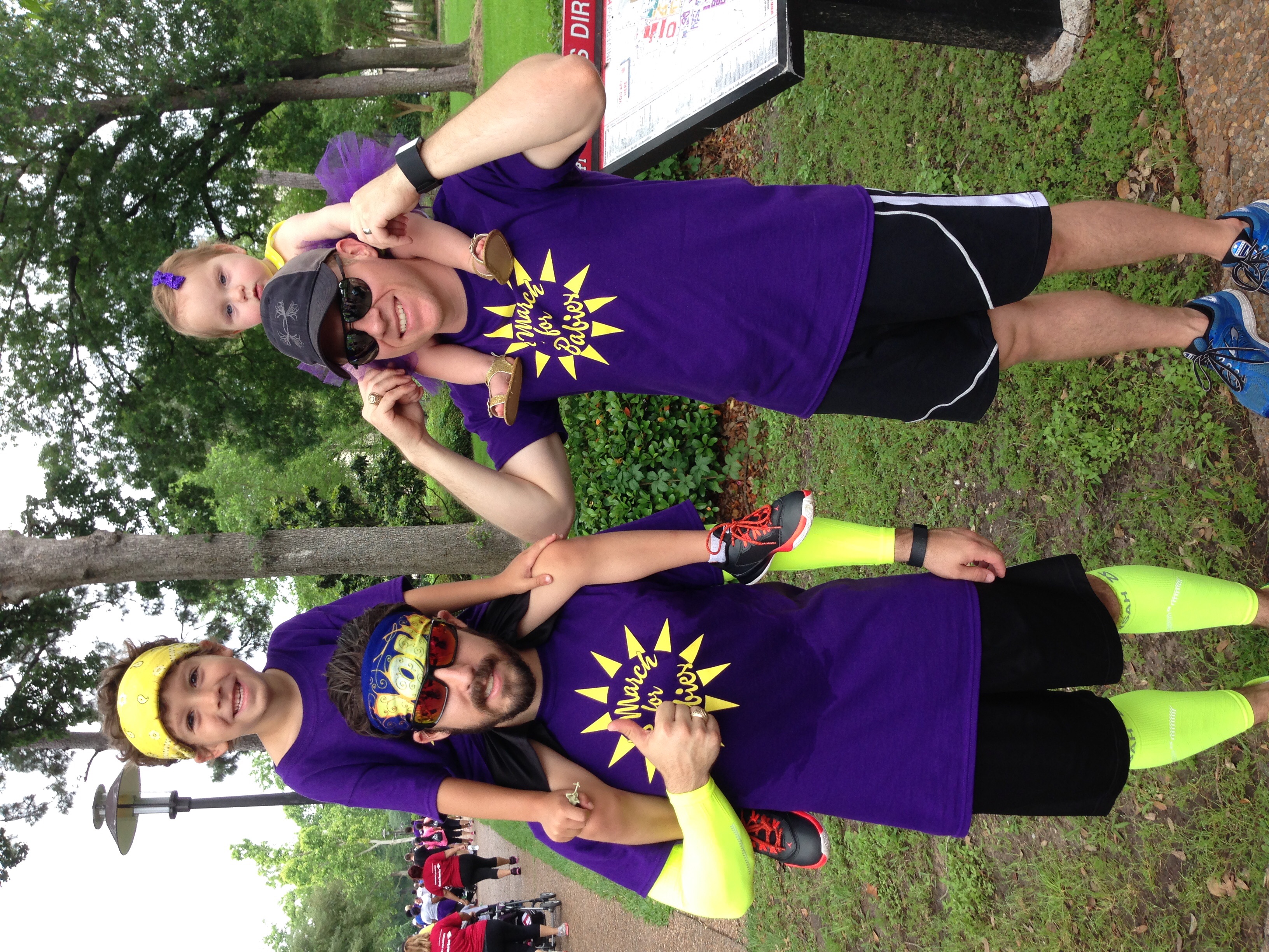 "This is from this year's Houston March of Dimes, March for Babies walk. Bailey (the little girl on the right), was born over 2 months premature last year and this years walk was the one year anniversary that she was able to come home from the hospital. What better way to celebrate than to gather family and friends to walk and support other babies who are born too soon? This picture is of Bailey on her dad's shoulders along with her uncle carrying her cousin on his shoulders. The walk, while emotional at times, was a huge success!