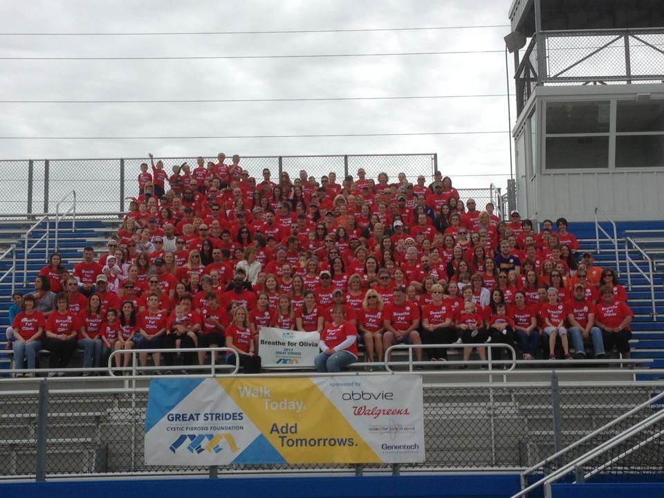 "Team Breathe for Olivia is made up of over 250 family and friends. The team raises money and awareness for The Cystic Fibrosis Foundation. This picture was taken at our most recent Great Strides event in New Holland, PA. "