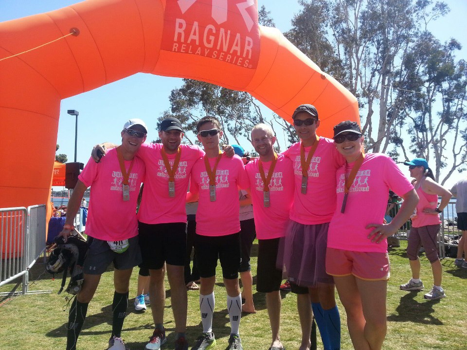 "Ragnar SoCal 2013. Our six-person "ULTRA" Team ran 193 miles from Huntington Beach to San Diego between Friday, April 19 at 8am and Satuday, April 20 at 3:00pm. On average, each runner completed 33 miles in less than a 24 hour period. Our team name was "Like a Freak." This is a picture of us at the finish line on Saturday afternoon."
