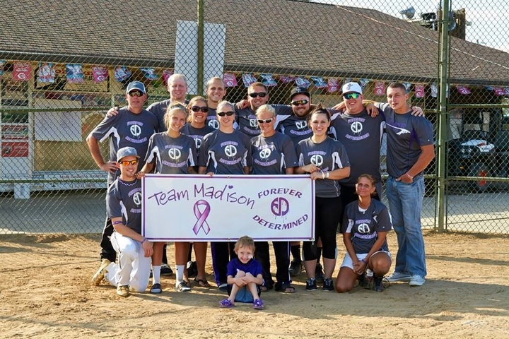 "This is our team picture from our softball tournament in Cincinnati Ohio where we played for a beautiful little 5 year old girl named Madison, she's fighting a battle against Nueroblastoma and she's knocking it out day by day, it's easy for all of us to say who our hero is and Madison...just from the tournament I already had multiple people saying they wanted a shirt since it has the tribute to Madison on the back just like the sign, and custom ink will make it easy to get those shirts for everyone because it was so quick and easy to do these the first time around!"
