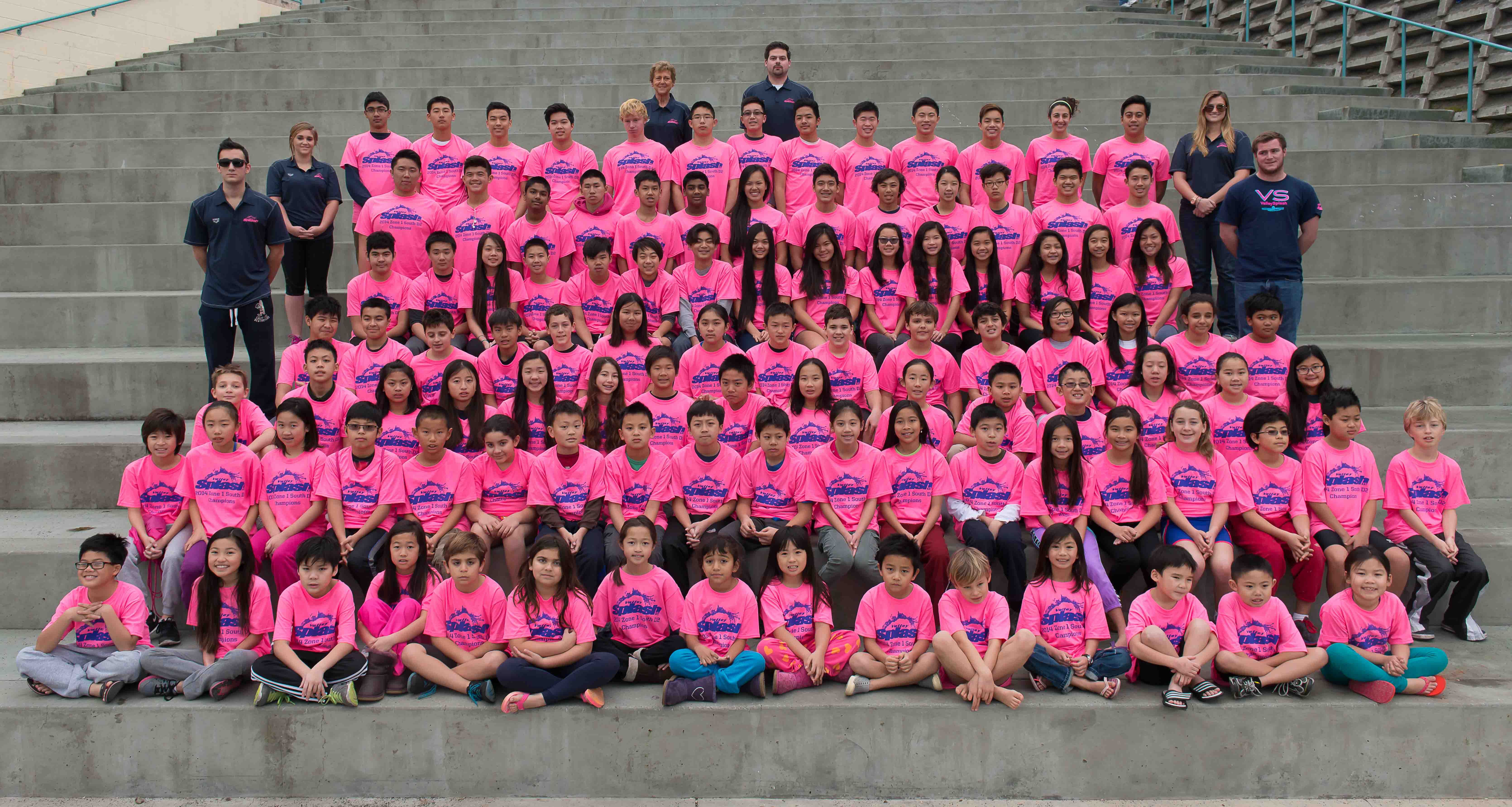 "We are a USA Swimming year round swim team. This is a team picture before our Zone Championship Swim Meet. This is in San Jose, CA. This is our 4th or 5th time doing a large team order."