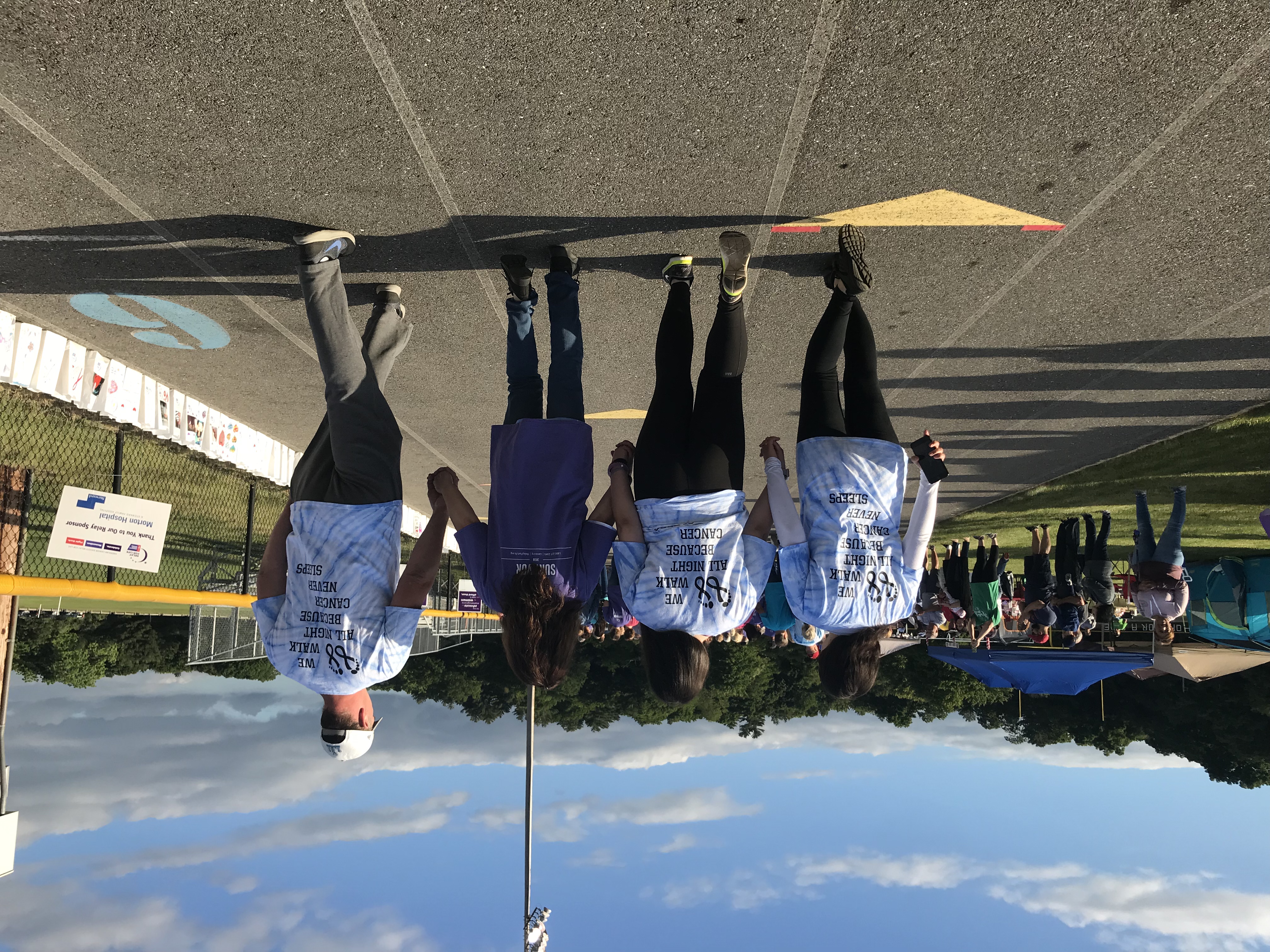 "These shirts were made for our Relay for Life team. This is an event that takes place every year, where people get together and walk the track all night long to fight against cancer. This photo was taken during the first offical lap, where cancer survivors and caregivers walk together to kick off the night. Displayed in the photo are our amazing Custom Ink shirts along side one of our survivors on the team. We greatly thank and appreciate the amazing products and customer service that Custom Ink provided us! "