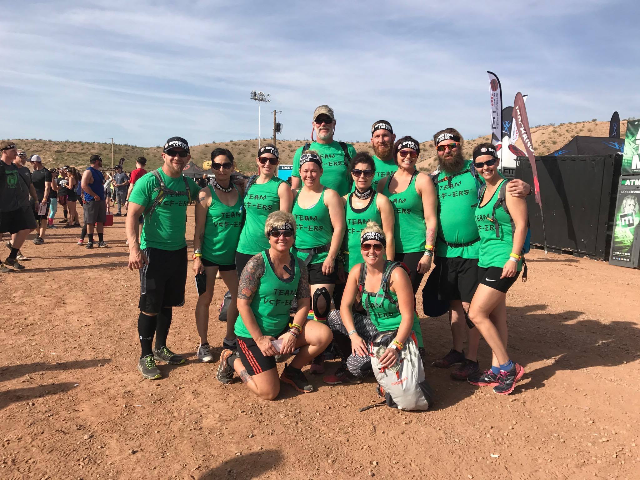 "This photo was taken at the 2017 Spartan Super Race in Mesquite, Nevada. This group of people is from the Vernal Crossfit gym, located in Vernal, Utah. We competed in the 8 mile race, which included 20 obstacles. We were proud to run in our awesome CustomInk emerald green shirts! We love your products and will continue to order from you."