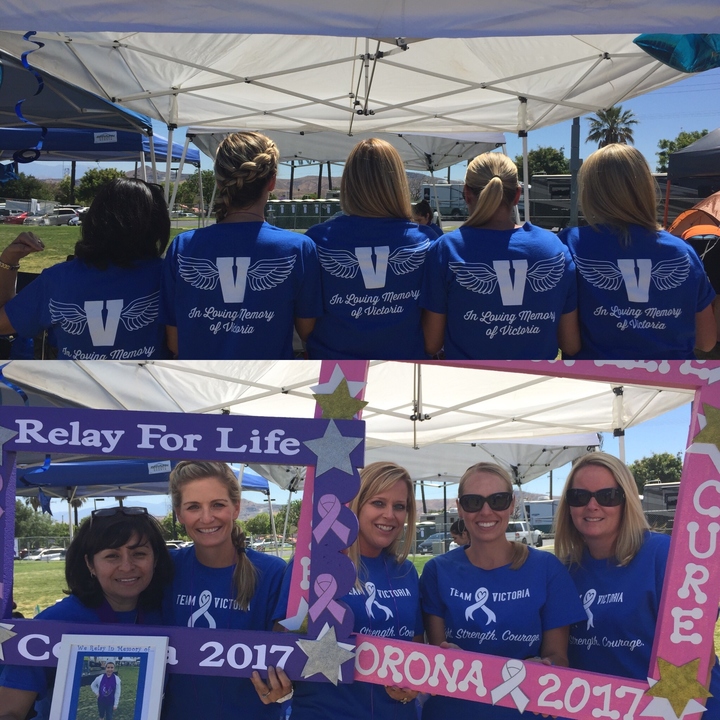 "Team Victoria was started 4 years ago for our 12 year old neighbor who was fighting brain cancer. Unfortunately she passed away in November of 2016 and this year at our Corona Relay for Life we added her wings to the back of our Team Victoria shirts to show her memory and that her wings will always be with us. "