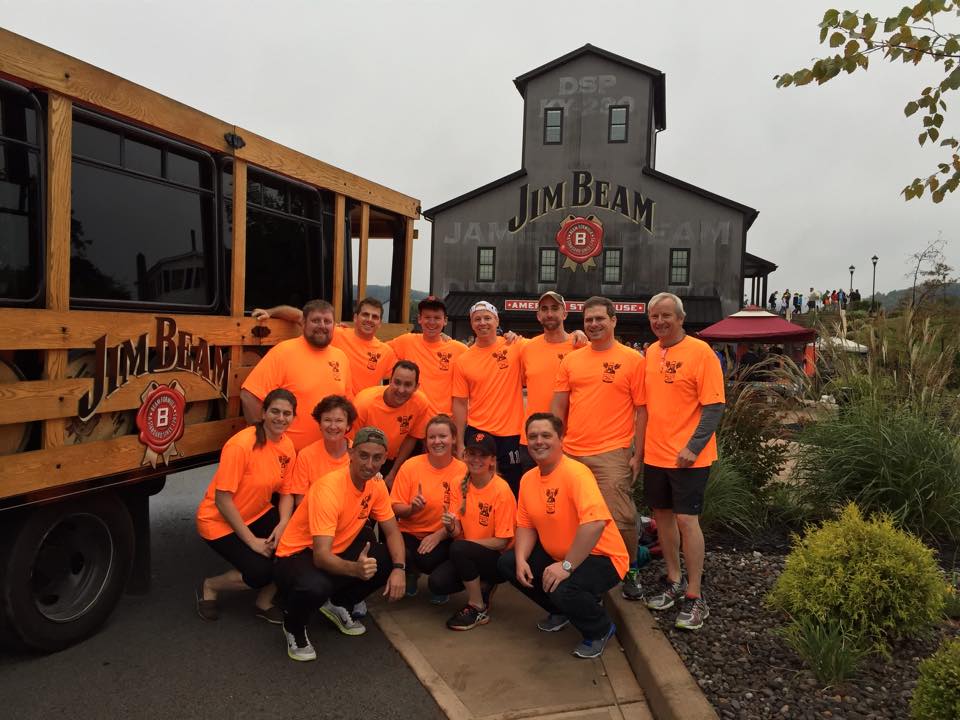 "Friends and Family from all over the country came together in Kentucky to run the Bourbon Chase...a 200 mile relay along the Bourbon Trail. Our team, Whiskey Rebellion, used CustomInk to design our shirts for the event and be our banner as we traveled across the countryside. The brightness and pop of our shirts left no doubt in finding a teammate on the course. This picture captured the beginning of our 31.5 hour journey that involved a number of memories and even more sips of bourbon."