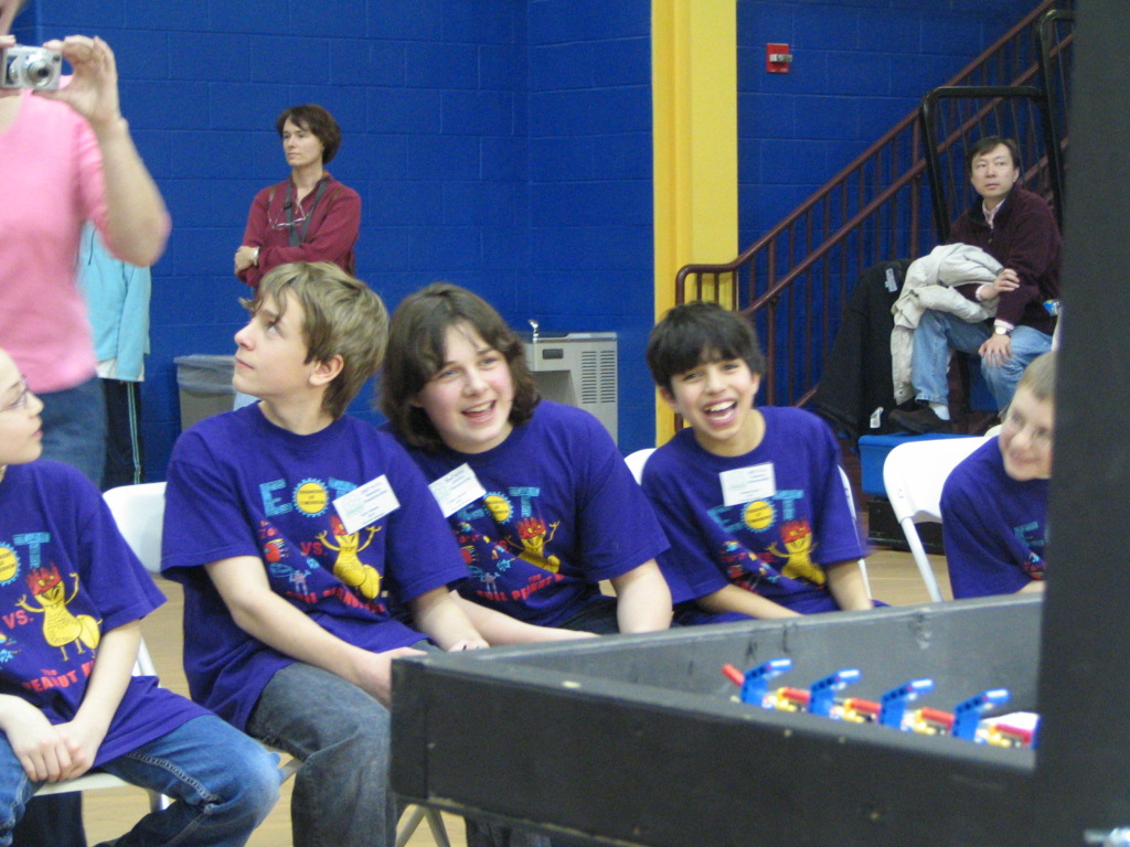 "The EOT is a FIRST LEGO LEAGUE team in Rhode Island. They won the state tournament here and will wear their customink.com shirts to Atlanta for the World Fest in April. This photo is several kids on the team having fun before round two of the tournament."
