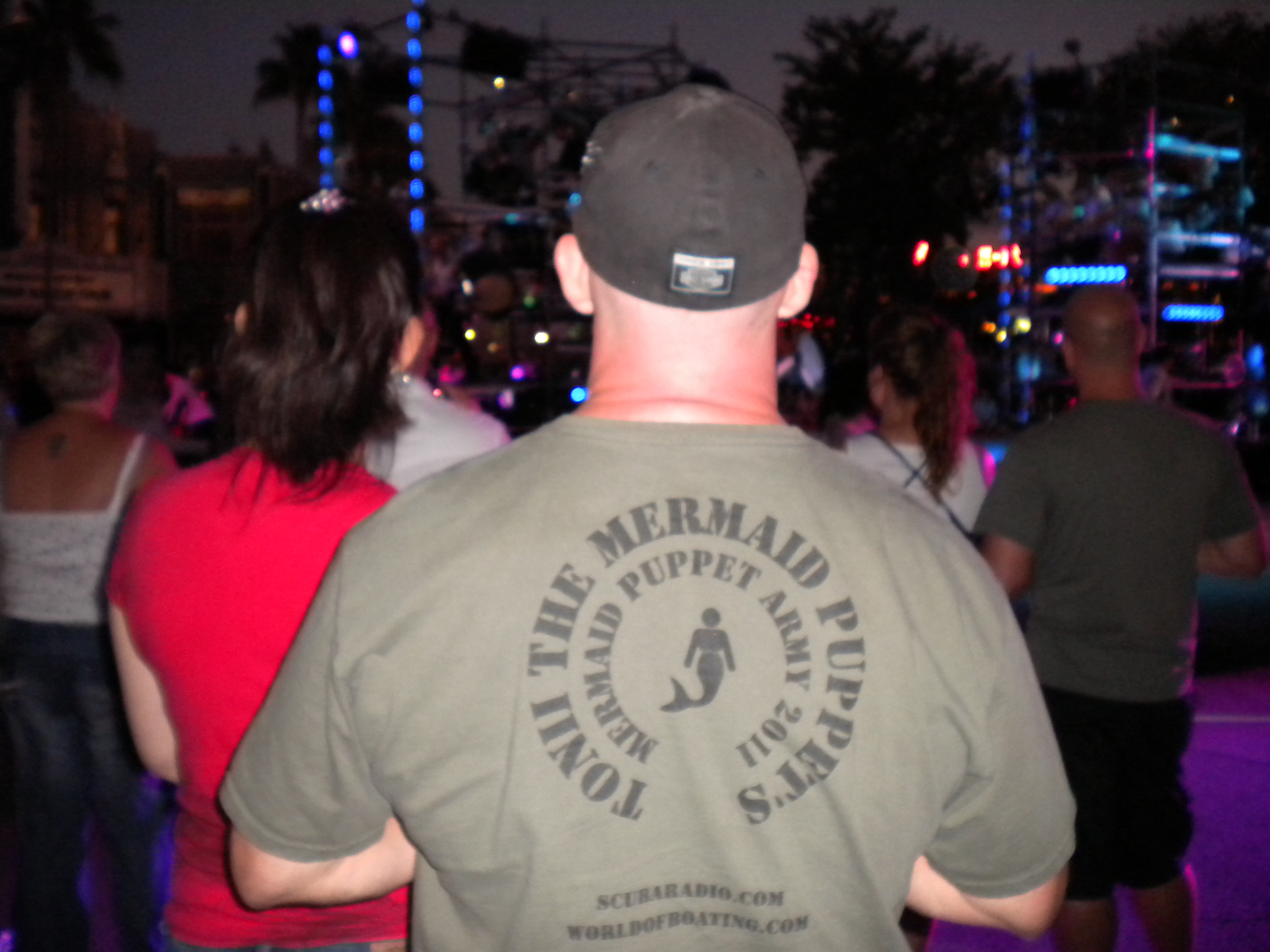 "The Mermaid Puppet Army started out as a radio bit and has grown quite a bit over the last year. The Mermaid Puppet is associated with both the World Of Boating radio show and Scuba Radio. These shirts have been worn by the staff at remote broadcasts in Grenada, Turks and Caicos, the Florida Keys, and across the U.S."
