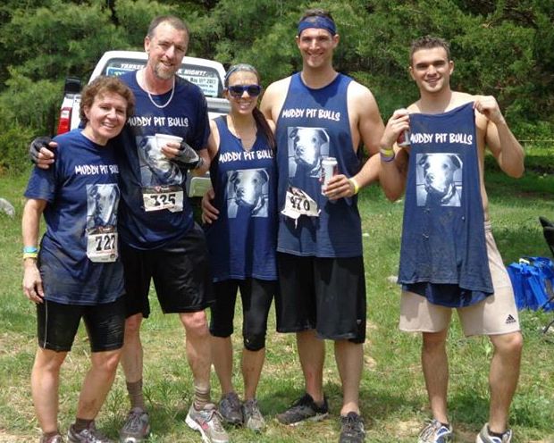 "We ran the Tuff Scrambler in Rehoboth MA on Sat May 18th. We proudly wore our dog Justice's photo that Custom Ink did a terrific job on. Thank you so much. . In the Fall we will be doing the Warrior Dash at Thompson Speedway in CT. We will have similar shirts made up but will have "Adopt a Pittie" on the back. Custom Ink give yourselves a pat on the back, you really did an awesome job. Missing from our post race photo was my youngest daughter as she had to go to work right after the race. That's a dedicated Dunkin Donuts employee. "