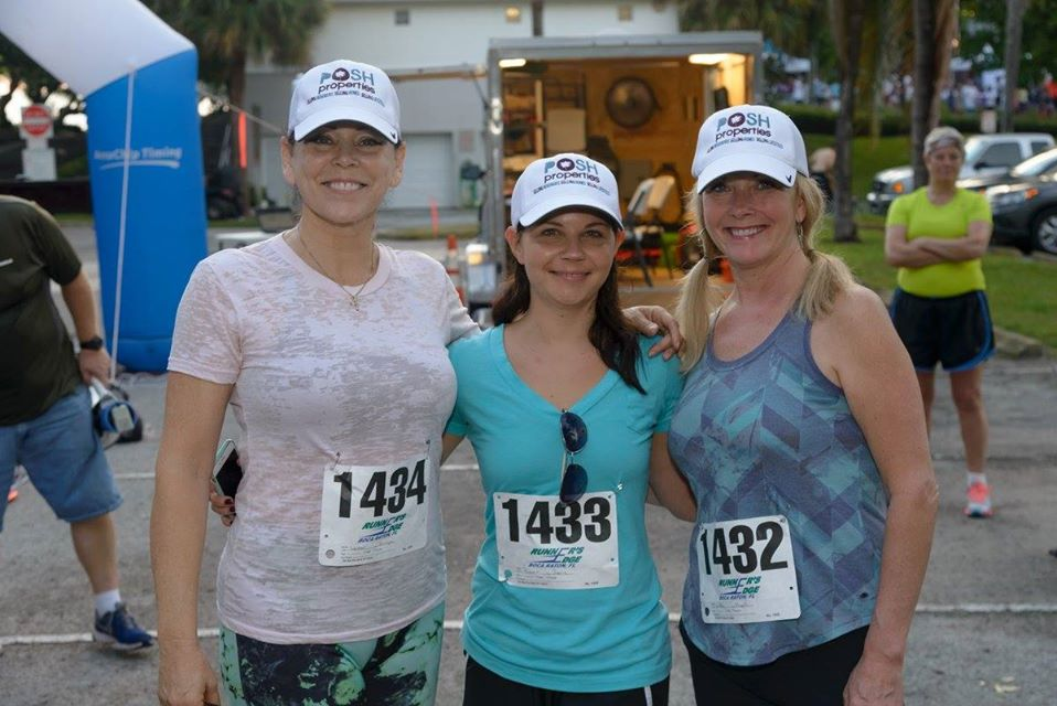 "Jerilyn Walter, Jacie Paulson and Maggie Liotta of Posh Properties, Delray Beach, FL run the 5k for AVDA, hope for the cause against domestic violence."