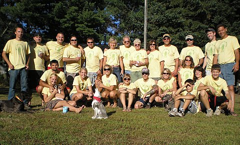 "Every Rutz Labor Day weekend we take a picture with family and friends. This year we celebrated 25 years with Grandma and Grandpa Rutz wearing our shirts with pictures of the annual Labor day Christmas Tree. The wolf was hard-won many years ago at the Rosholt Labor day fair."