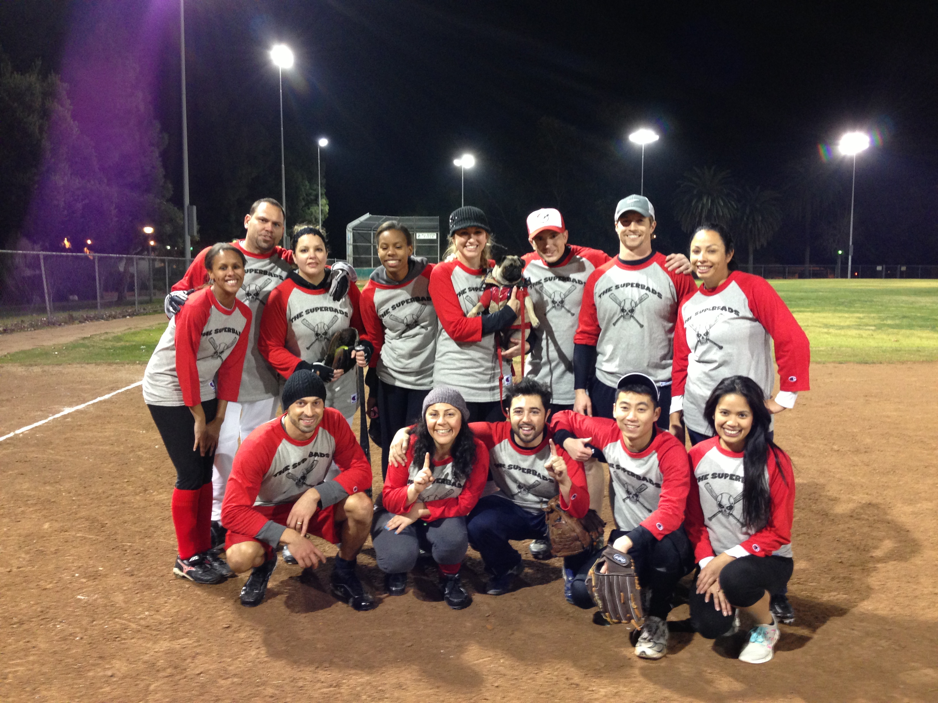 "Nobody will believe this but it actually gets pretty cold in California come January. The 3/4 length jerseys we ordered from CustomInk were perfect and helped us power through an extra inning victory. Even our mascot Lola enjoyed her T-shirt. "