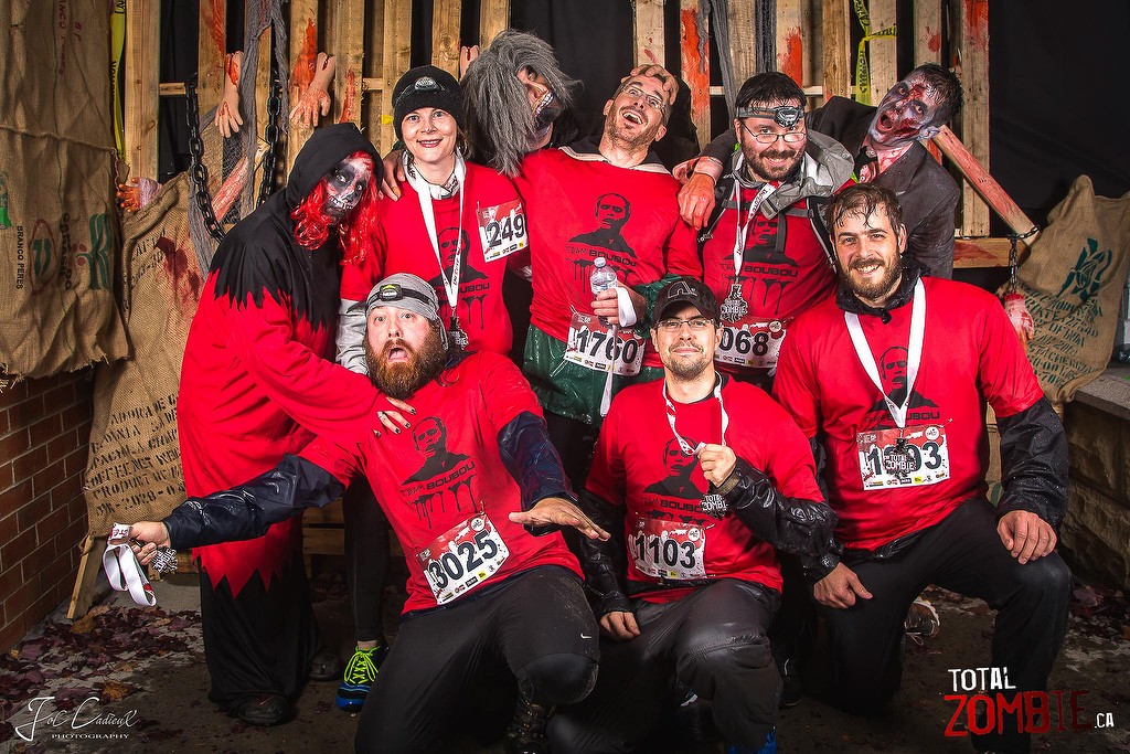 "The Total Zombie race is an event organised by the Multiple Sclerosis Society of Canada to raise money and awareness for their cause. It's a 5 km race, in the dark (!), where the participants run with 3 flags (lives) around the waist and try to finish the course "alive" (without the zombies stealing all their flags). Sadly, we all "died" but we had a lot of fun!!