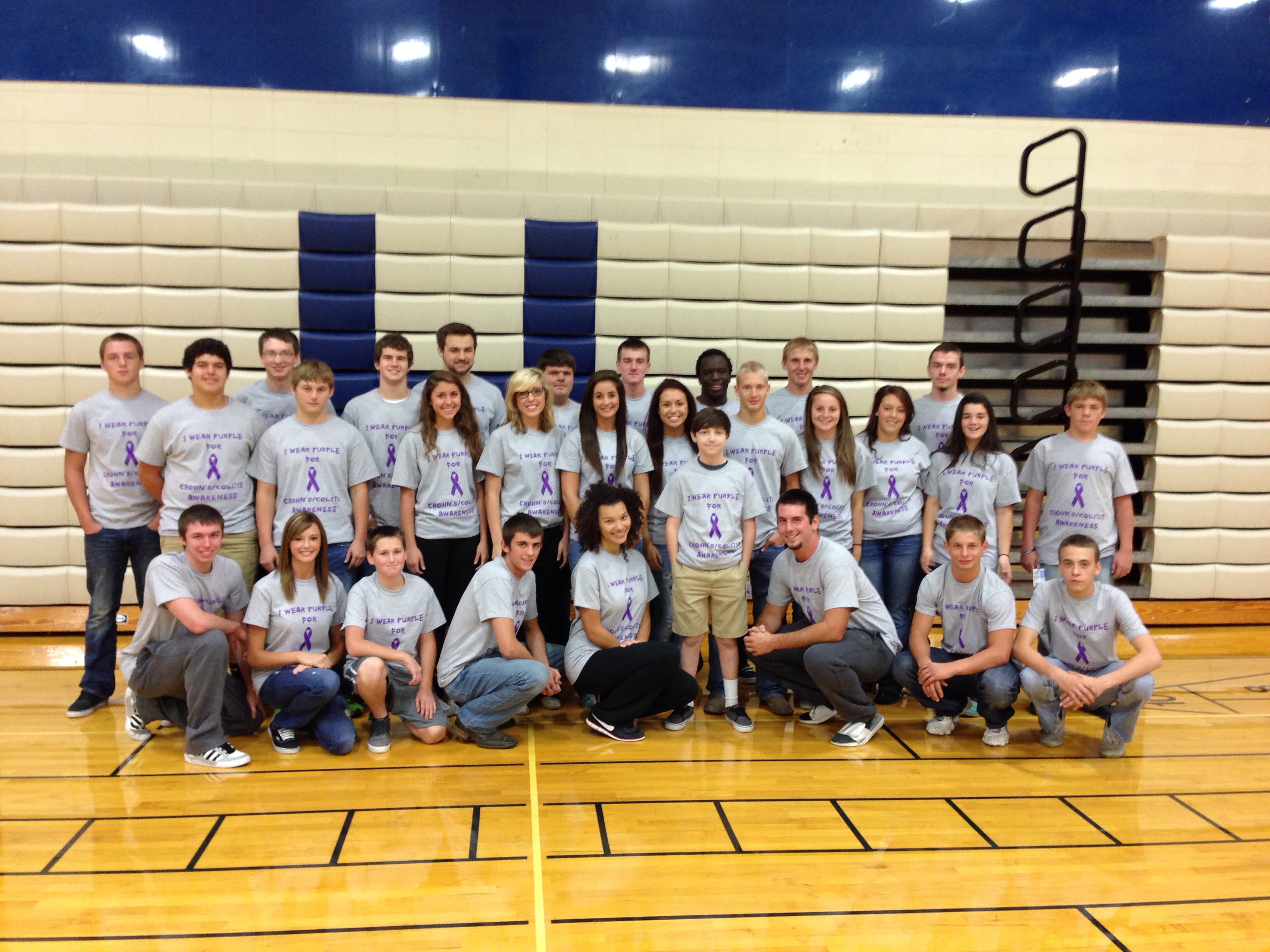 "My 14 yr old son Trevon has Crohn's disease, so my oldest son, my husband and I decided to surprise him and have shirts made and have their closest friends wear them to school without him knowing! We pulled it off!! I went to the school and had the teachers pull all the students into the gym and then bring Trevon in! We were all standing there in our shirts and we then presented him with his own and told him how much we love and support him!! He was speechless!! It was amazing!!"