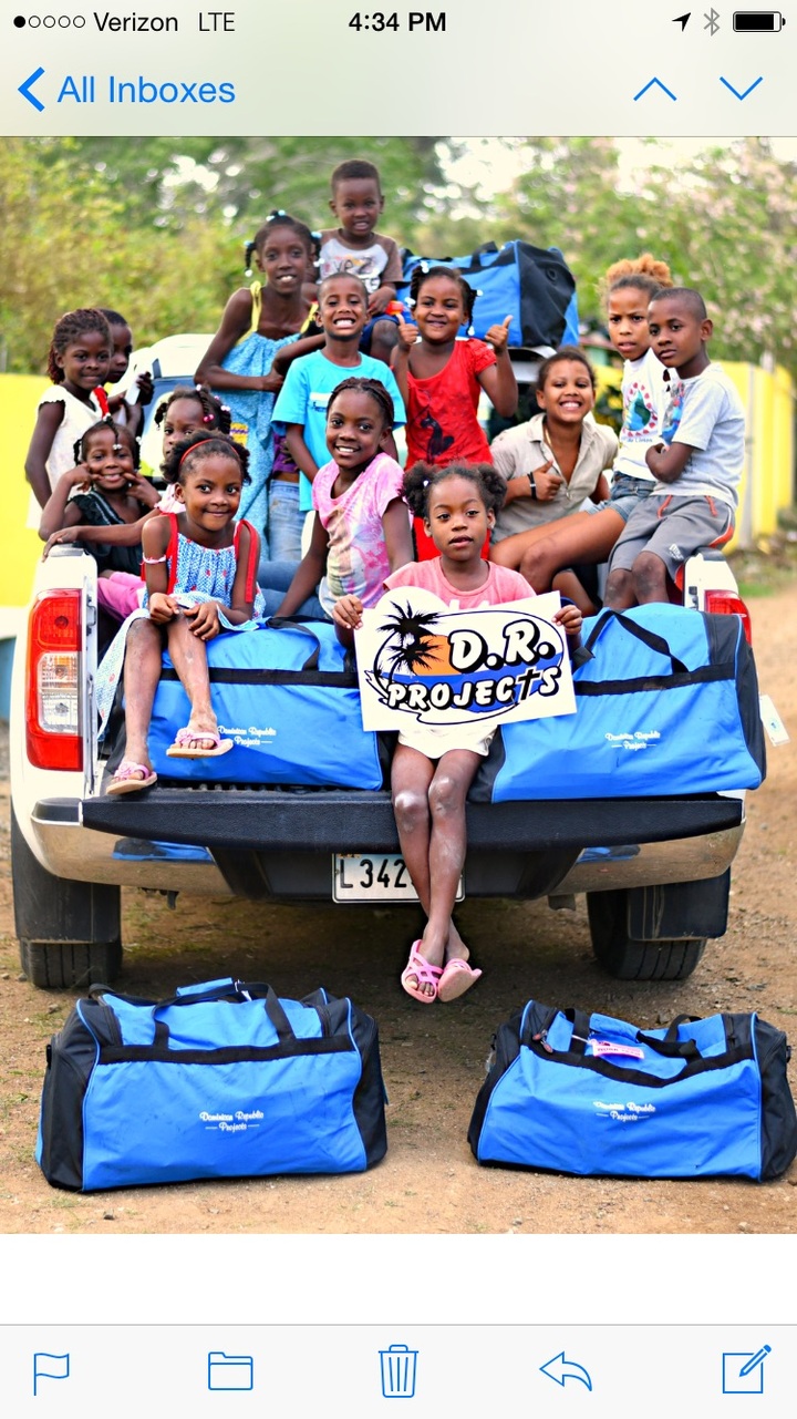 "Photo taken Jan 28, 2016 in the village of La Higuera, Dominican Republic . After working in this village for 10 years it's needless to say we have developed some friendships! This particular day we arrived at Bethel Church loaded down with over 400 pounds of medical supplies . We were soon overtaken by our many friends who were more then happy to show off our new CustomInk personalized duffels. They were all smiles and the team was also as the duffels held up well and proudly displayed our D. R . Projects logo!! A big Thank you to CustomInk and its unmatchable friendly staff!!