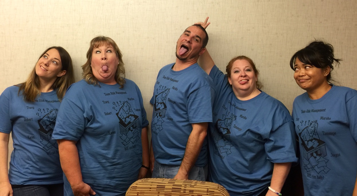 "We are a risk management team for a credit union and wanted to show ourselves as a team on Fridays when we get to dress down. This was taken at our Taco Thursday luncheon. CustomInk was great and it was so easy to create a t shirt that everyone would like. We currently are doing a second one for a credit union event in October for the two teams that report directly to me. :)"