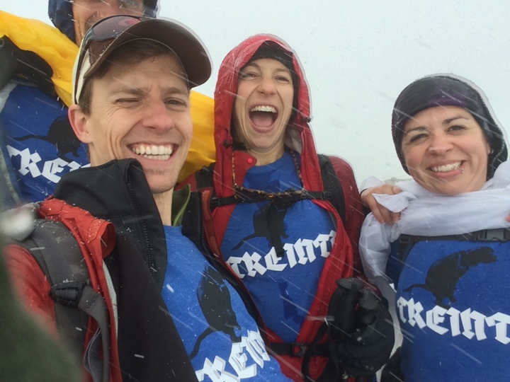 "A group of friends traveled to Yosemite on an annual camping trip with plans to hike the Clouds Rest trail. The weekend also happened to fall on my husband's 30th birthday, so I created these Tshirts sporting our dog, Franklin, as a surprise. This picture was taken from the summit, where unfortunately snow prevented us from enjoying panoramic views. Thanks CustomInk!"