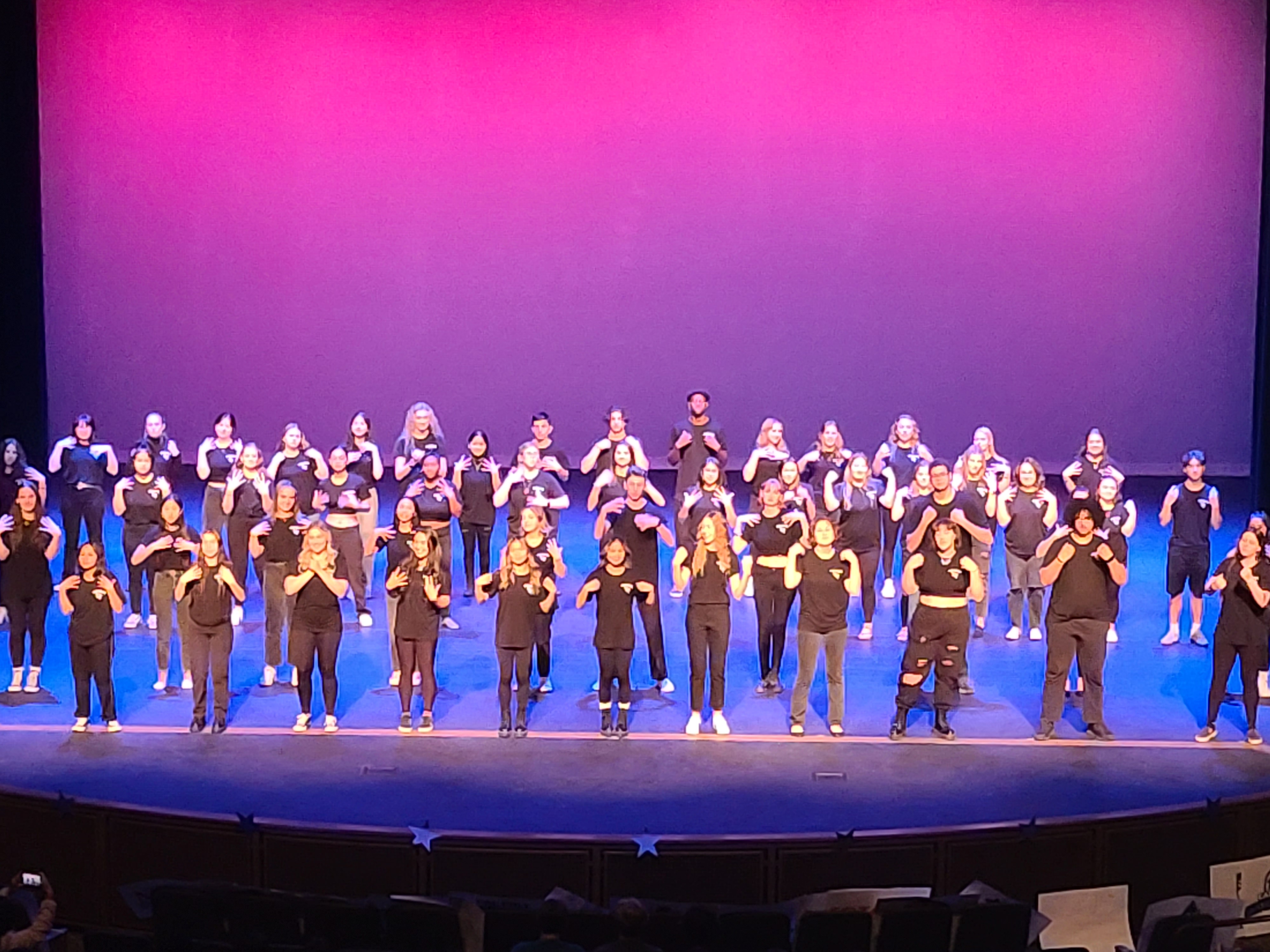 "Temecula Valley High School's ASL Level 3 and 4 students putting on their 2022 Spring Showcase "ASL Blockbuster Movies" in their awesome and comfy Custom Ink tees! We use them 2-3 times a year because our students love the softness and style of their tees!"