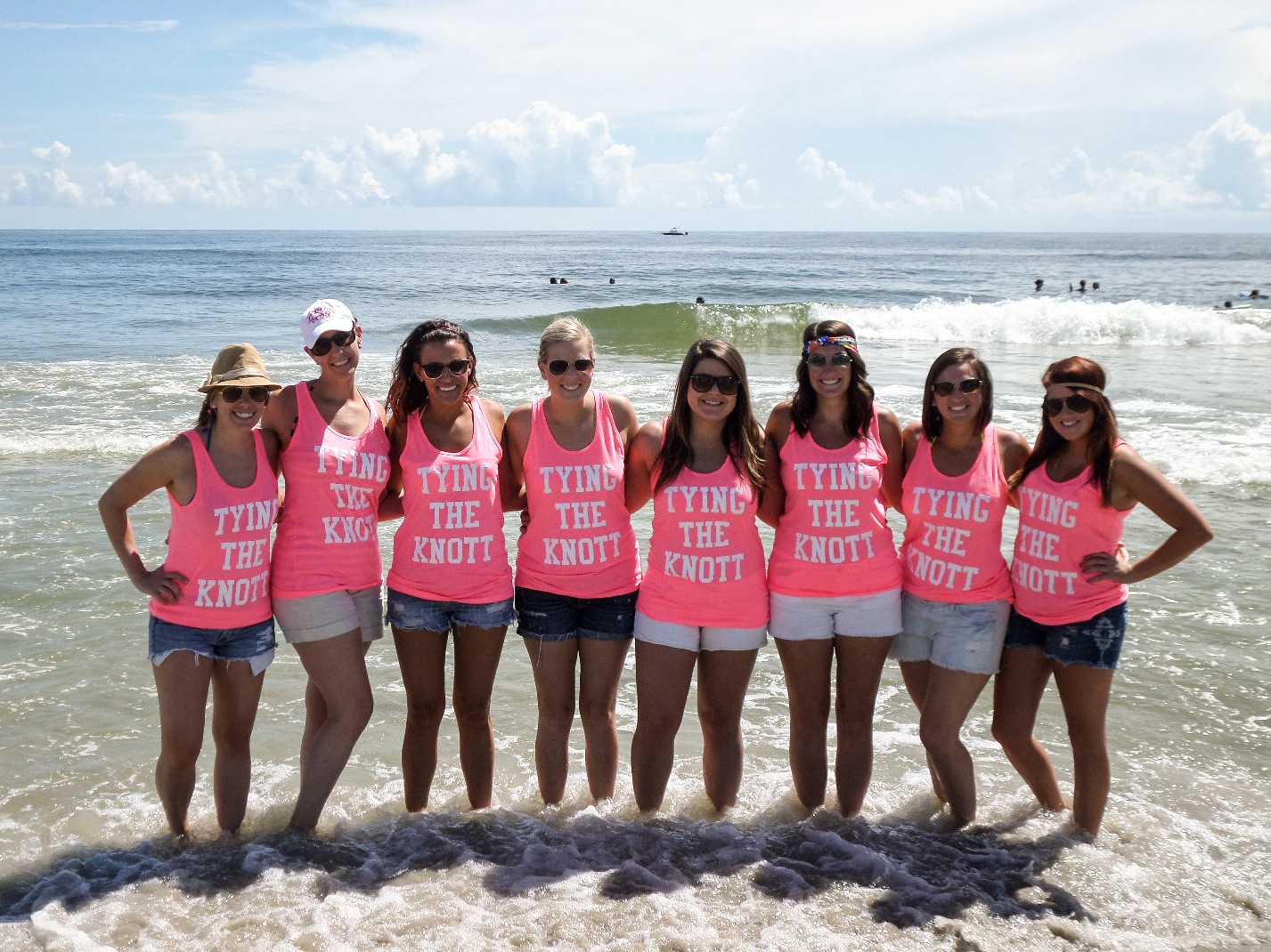 "The Bride's last name that she would be losing was Knott, so we thought this would be the perfect play on words! Tying the Knott! We had such a fun time in Savannah with all of the bridesmaids and friends for Lauren's bachelorette party. These shirts were the perfect thing to wear around the town and to the beach!! "