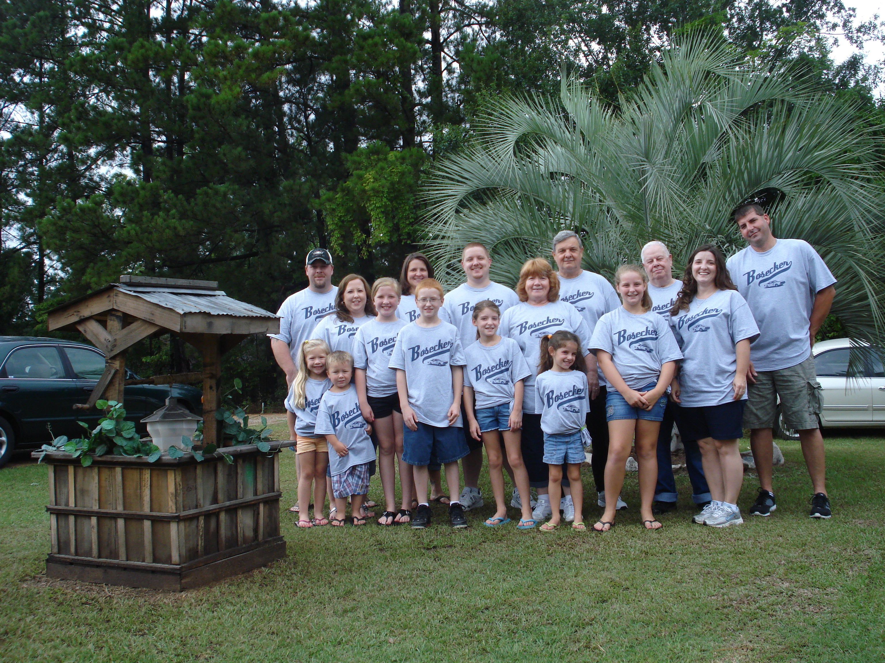 "We took a road trip to visit my Grandpa Bosecker leaving Fancy Farm KY to Dry Prong LA. We ordered shirts with our last name Bosecker on them with a Dodge Charger because my dad and my uncle restore Mopar vehicles. There are 4 generations in this photo. We decided to order at the last minute so we ordered on Monday and got the shirts on Wednesday before we left on Thursday. CustomInk was very helpful and friendly in getting our order done."