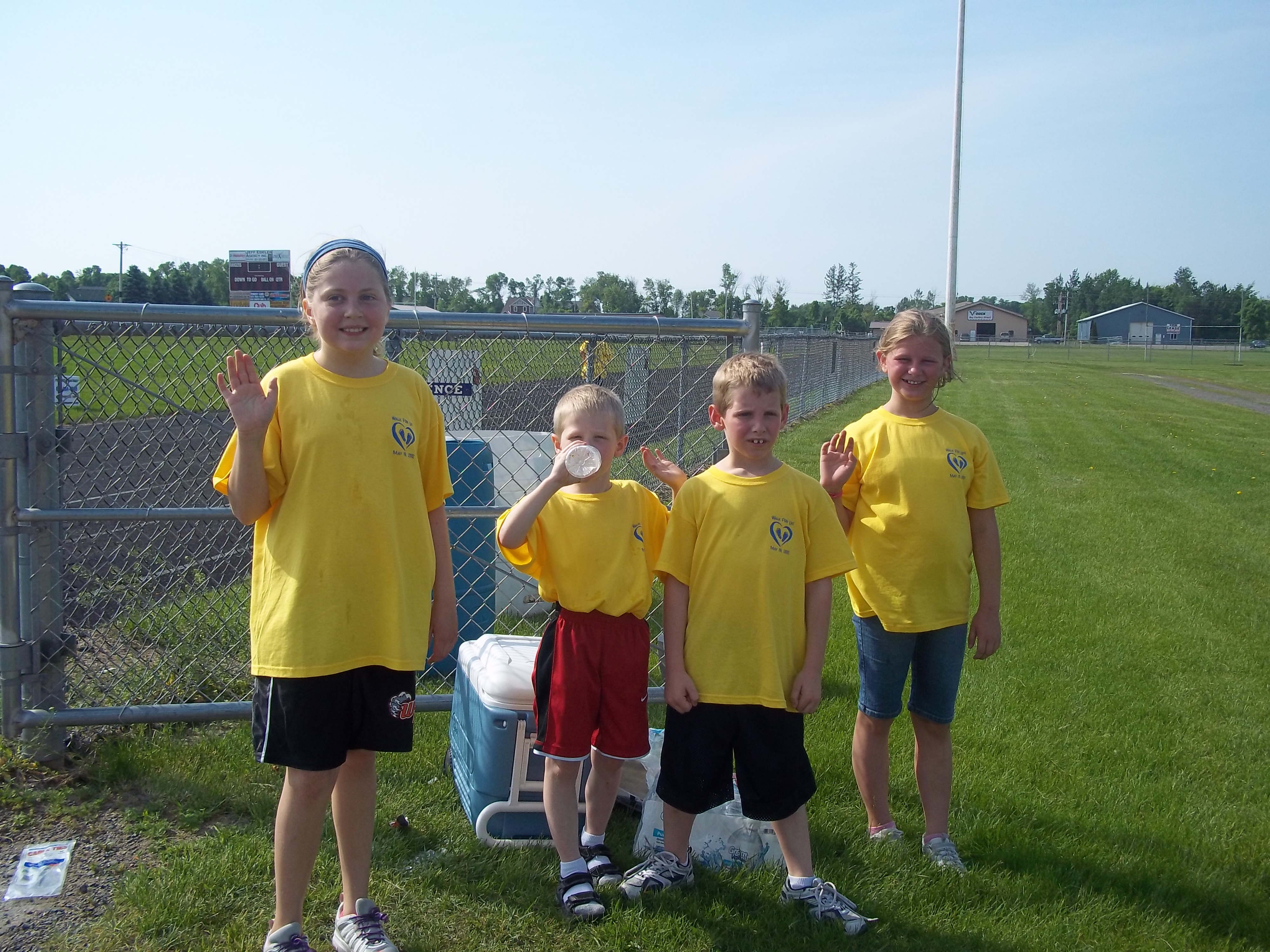 "Lakes Life Care Center held its 2nd Annual Walk For Life on Saturday, May 19th at the Forest Lake Senior High School. Pictured are some of the kiddos that walked to help raise funds for the center. They walked hard and stopped for a water break. CustomInk was awesome to work with! Everyone loved the shirts and I loved how easy it was to order them! Thanks CustomInk!"