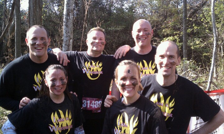 "Warrior Dash is the craziest frickin' day of your life ... 5k run with fire, mud, water, rope walls, burned cars, and many other obstacles .... this is 6 of the 12 of us that competed ... it was AWESOME"